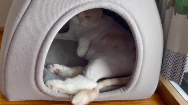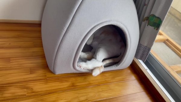ナッツハウスのなかから覗かせるナッツのあんよ。