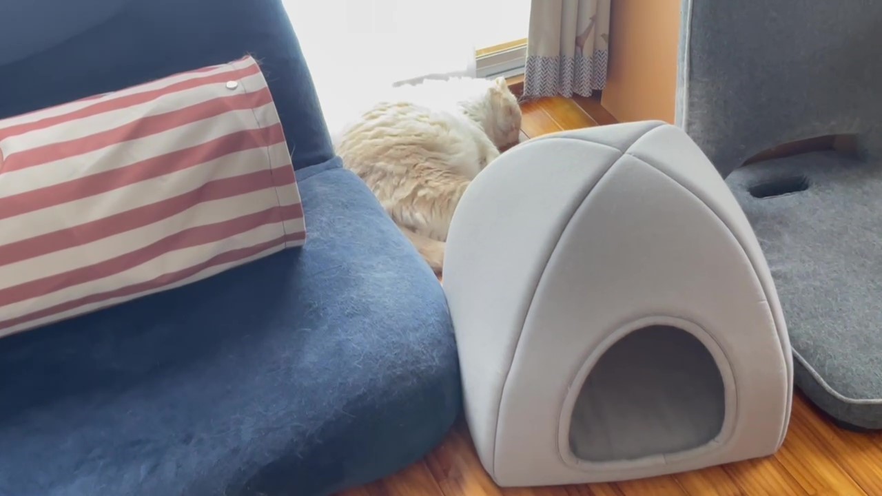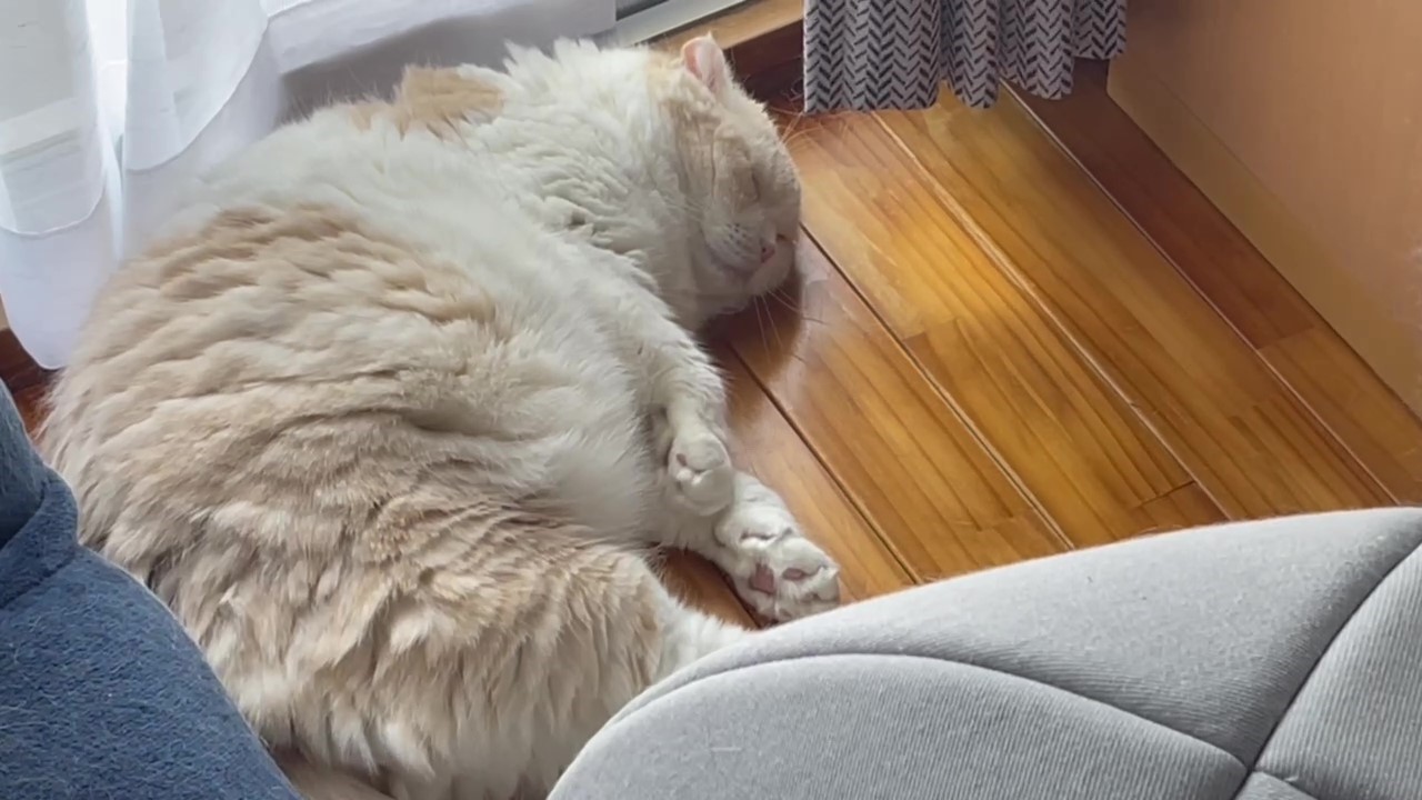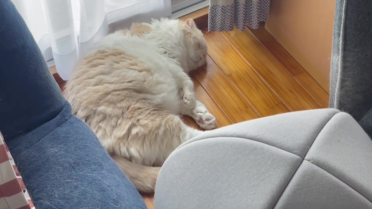 いろんなものに囲まれて、ナッツがお寝んねしています。