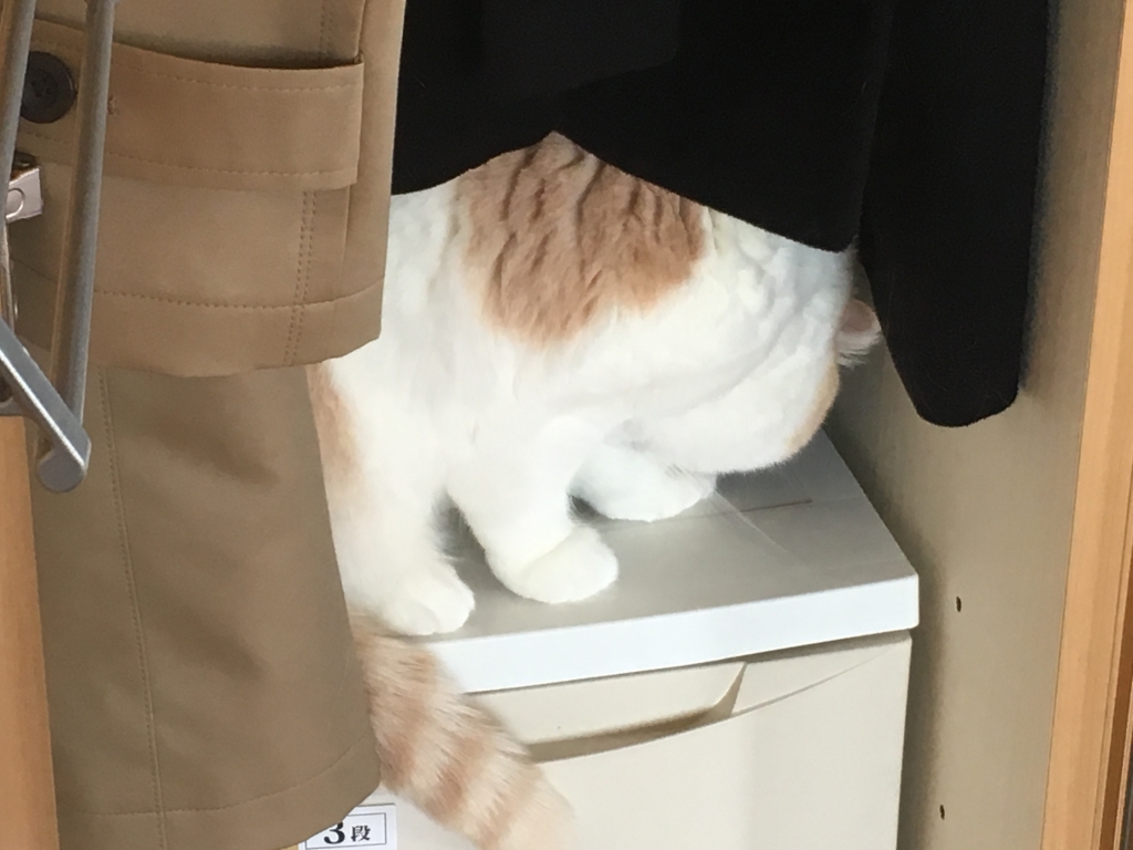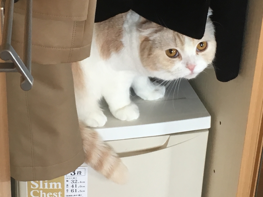 見ぃ~つけた♪ ナッツにとっては洋服ダンスも遊び道具に早変わりです。