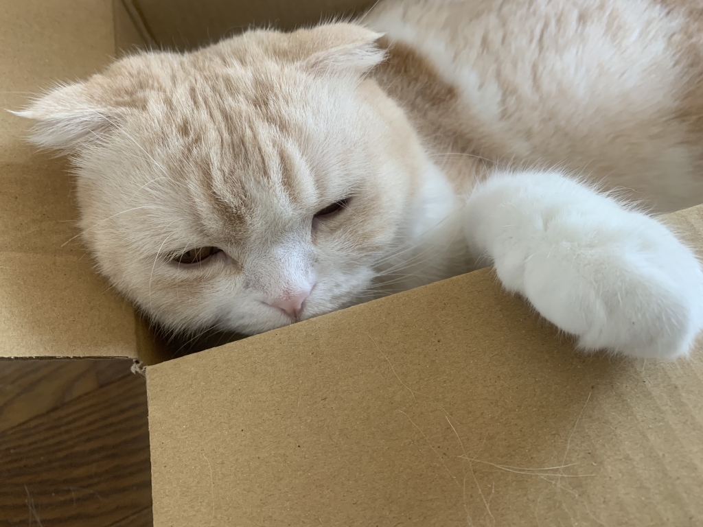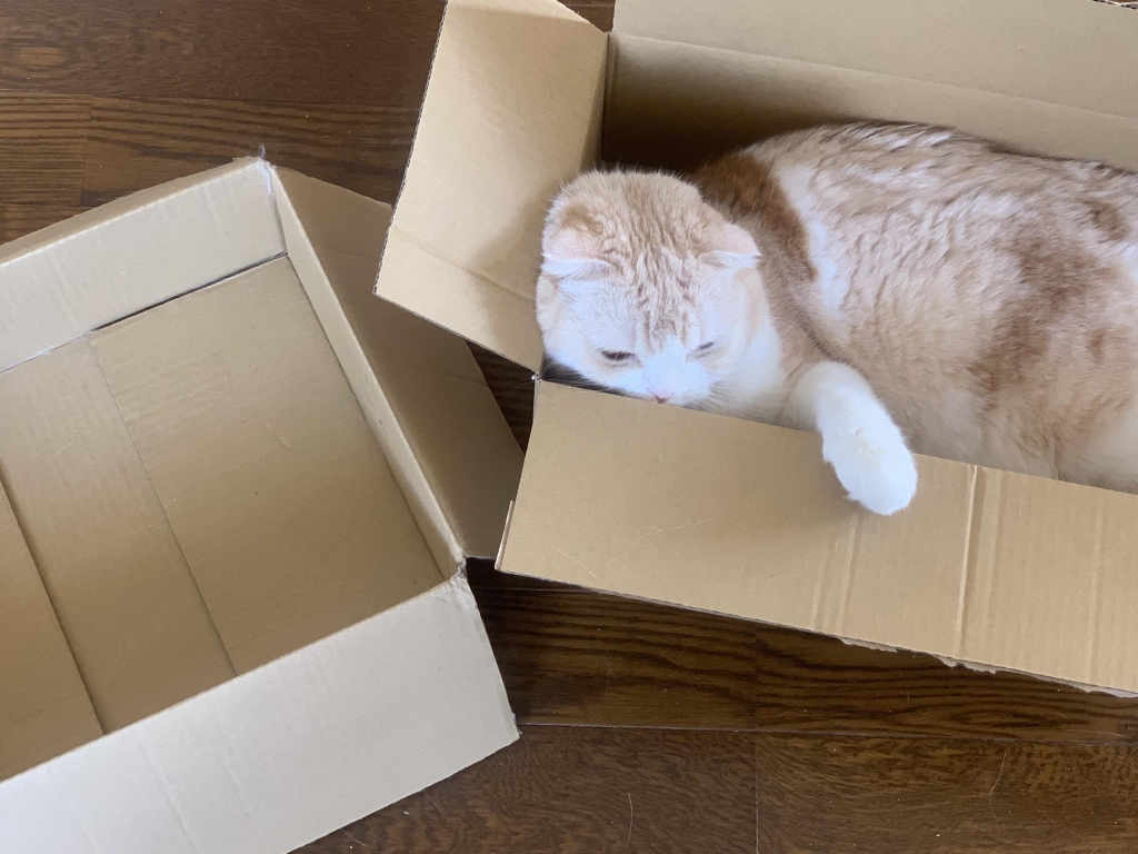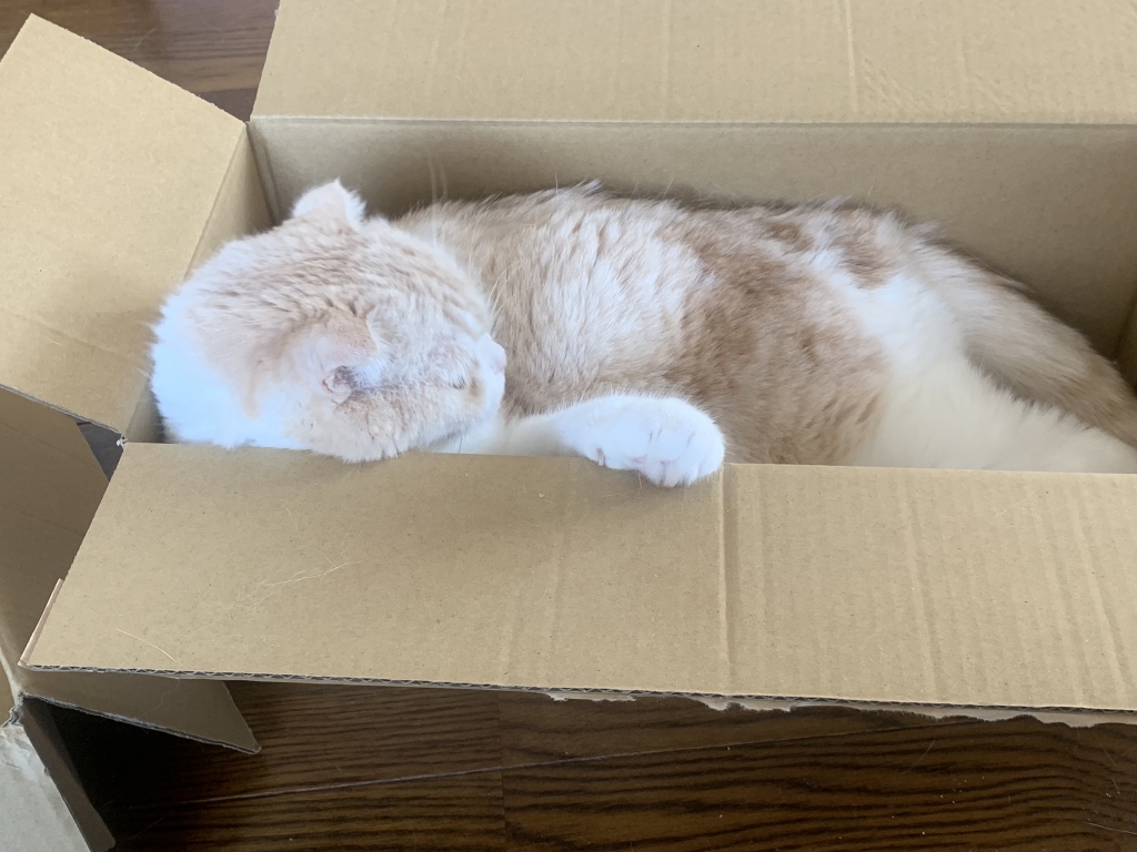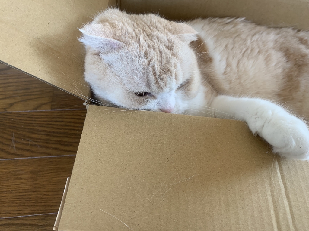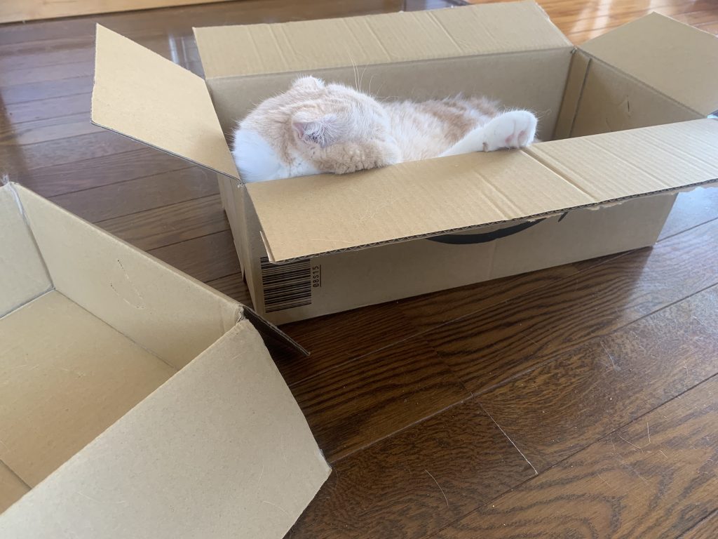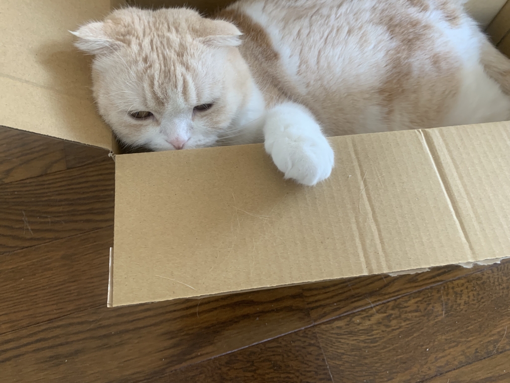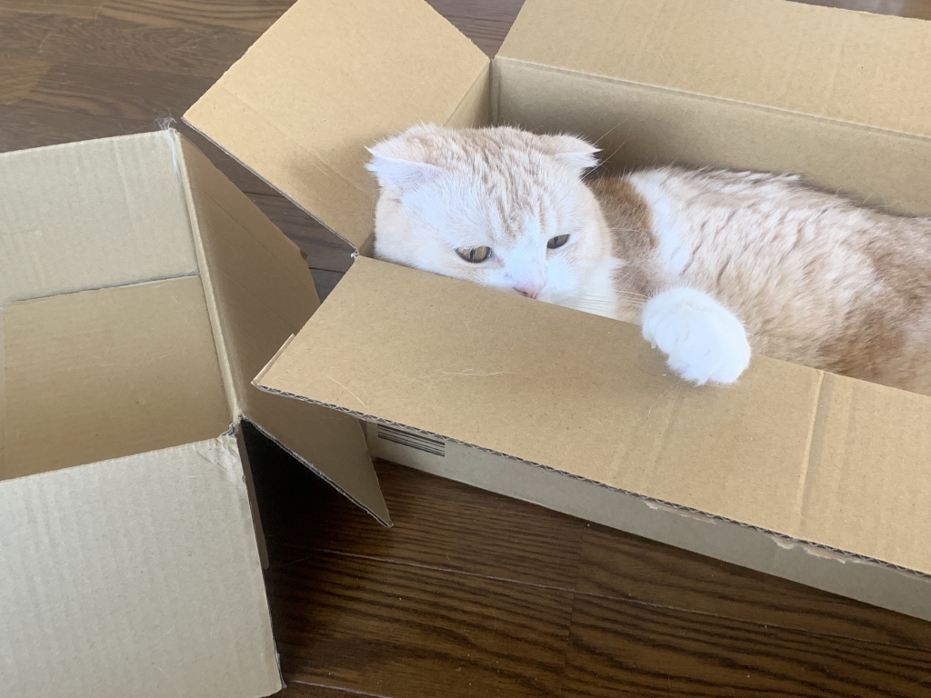 荷物が梱包されていたダンボール箱を捨てようとしていたら、ナッツが入ってきました。