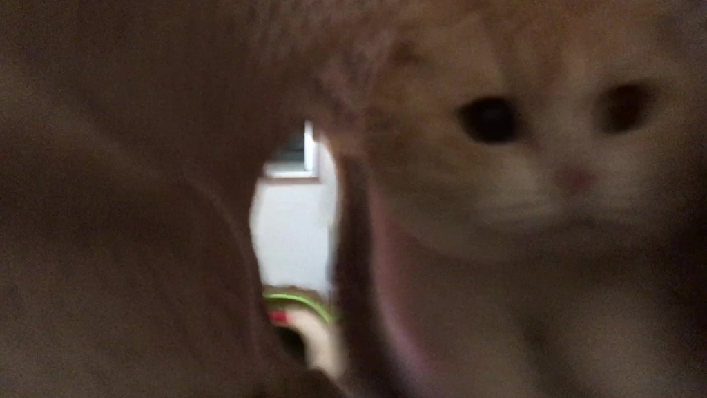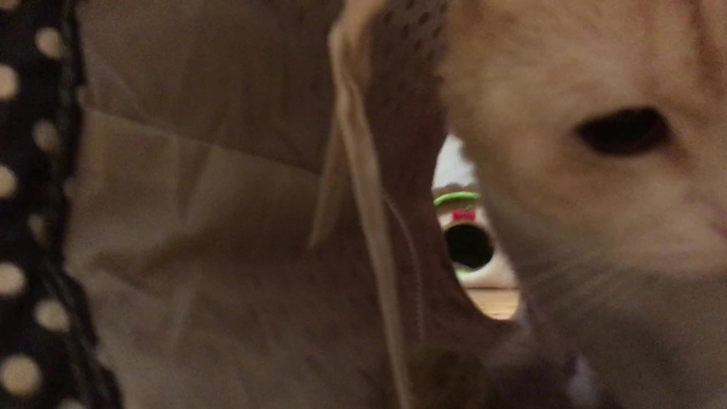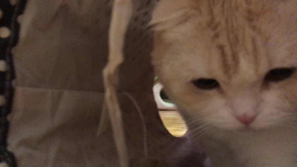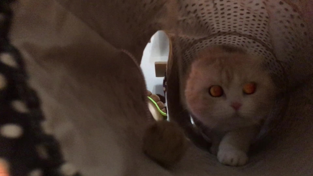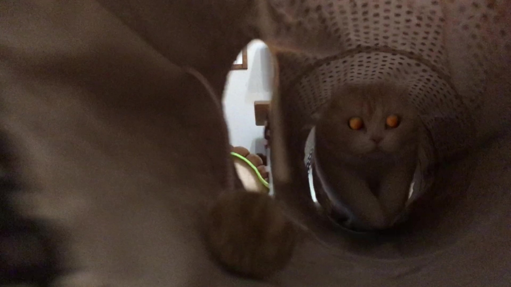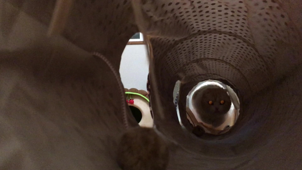 ナッツがトンネルの向こうから、こちらを見ています。