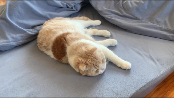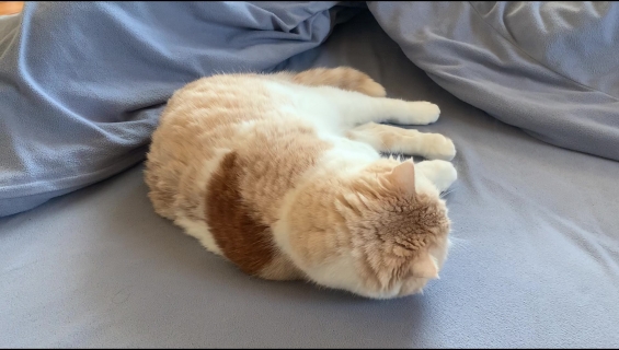 ナッツ~♪ パパのお布団で寝んねしてるの?