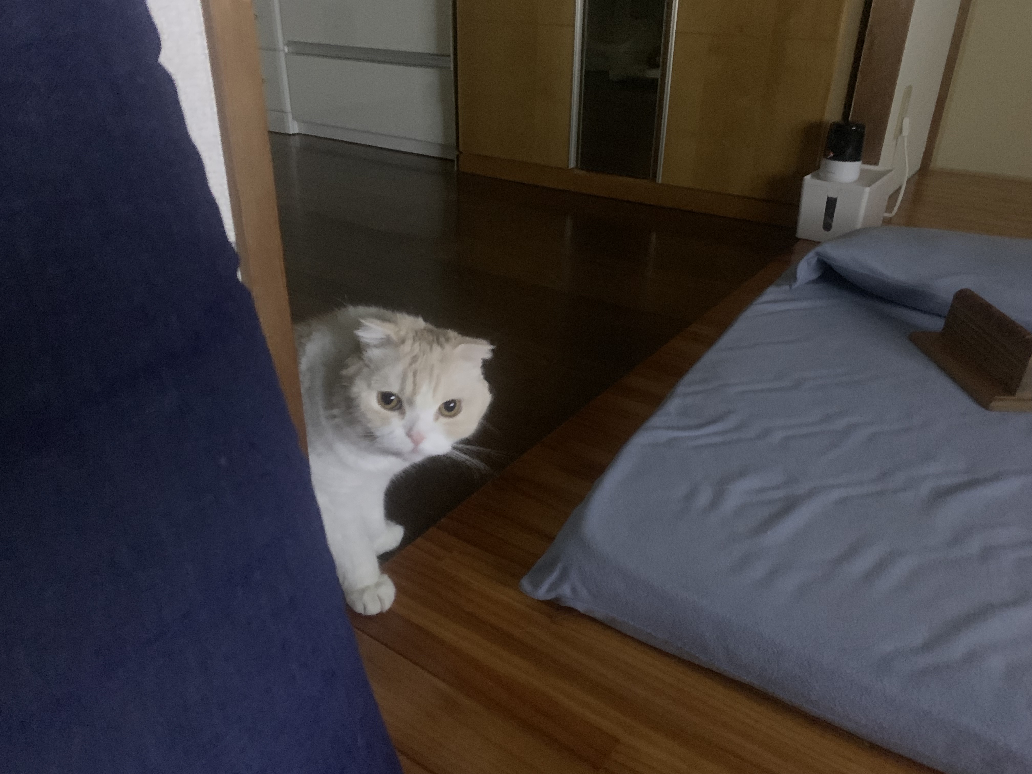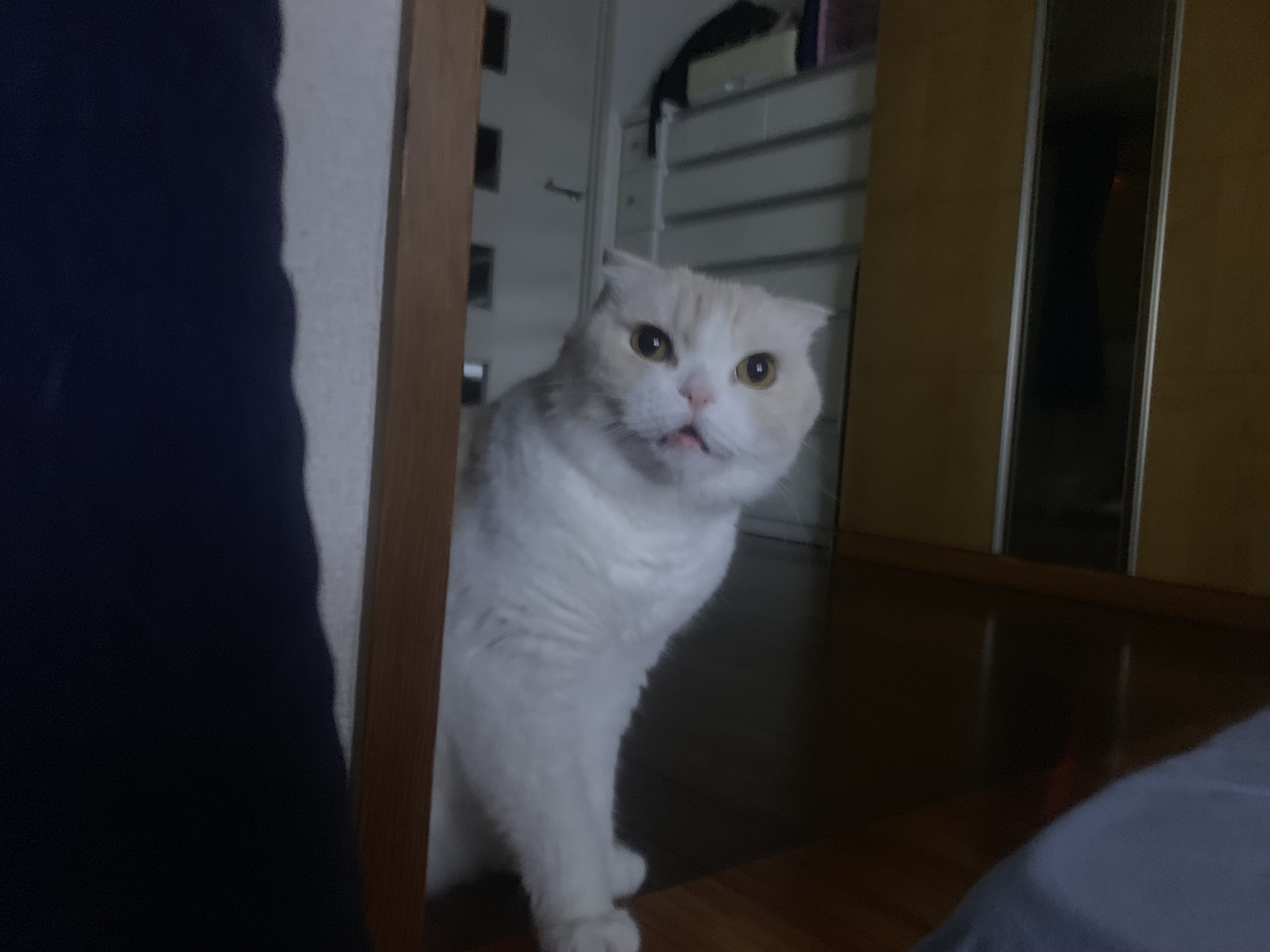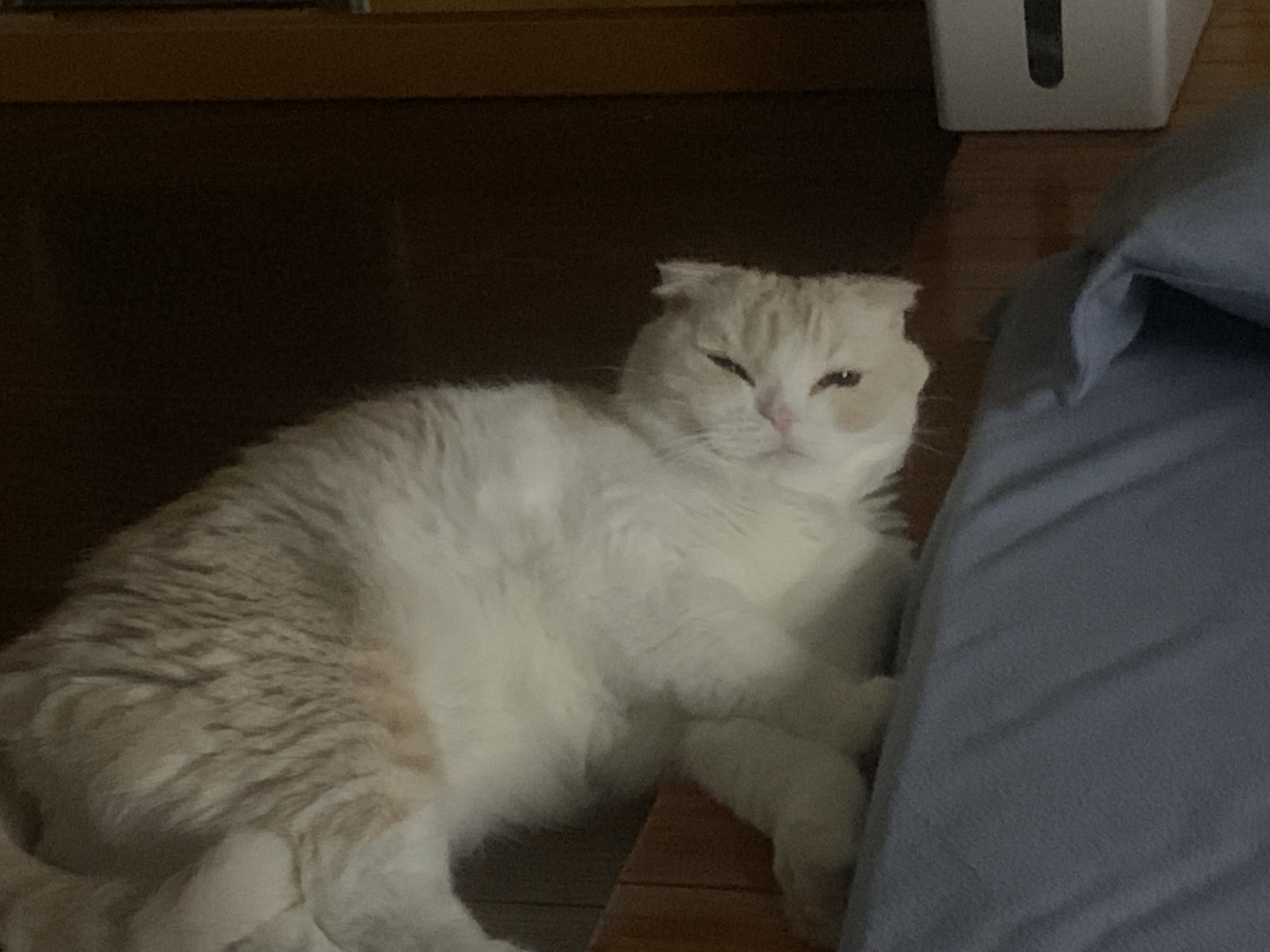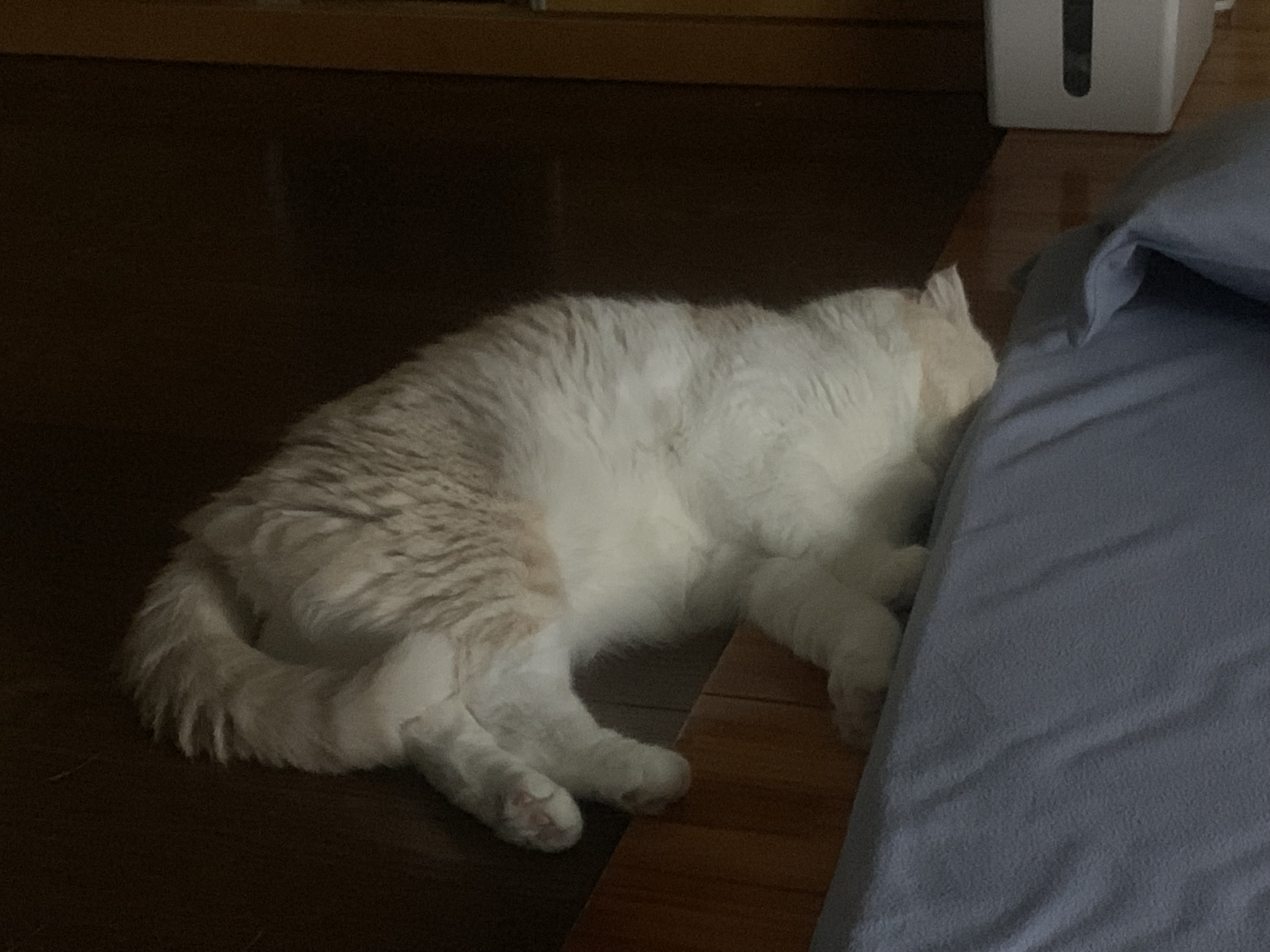 夜中の3時40分。ナッツがおなか減ったよ~と言ってるので、ごはんを用意。ごちそう様したナッツがお部屋にもどってきました。
