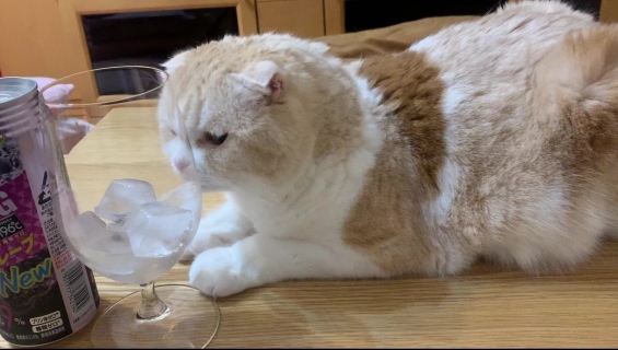 パパが晩酌をたしなもうとしていたところ、ナッツが来てくれました♪