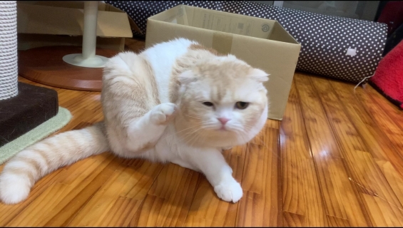 どうやらお耳がかゆいみたいです。 お耳をかきかきしております。