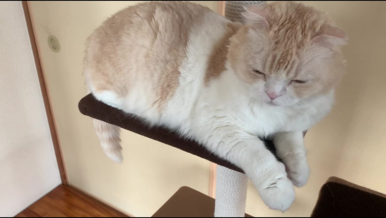 ナッツ~。 キャットタワーでのんびりしているね~♪