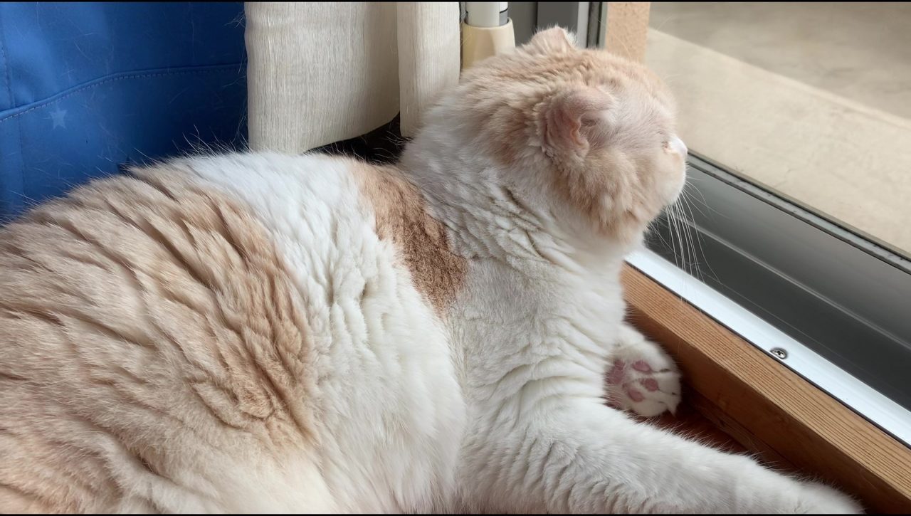 ぺたん♡ 窓ガラスにお手てをあてて休憩中です♪