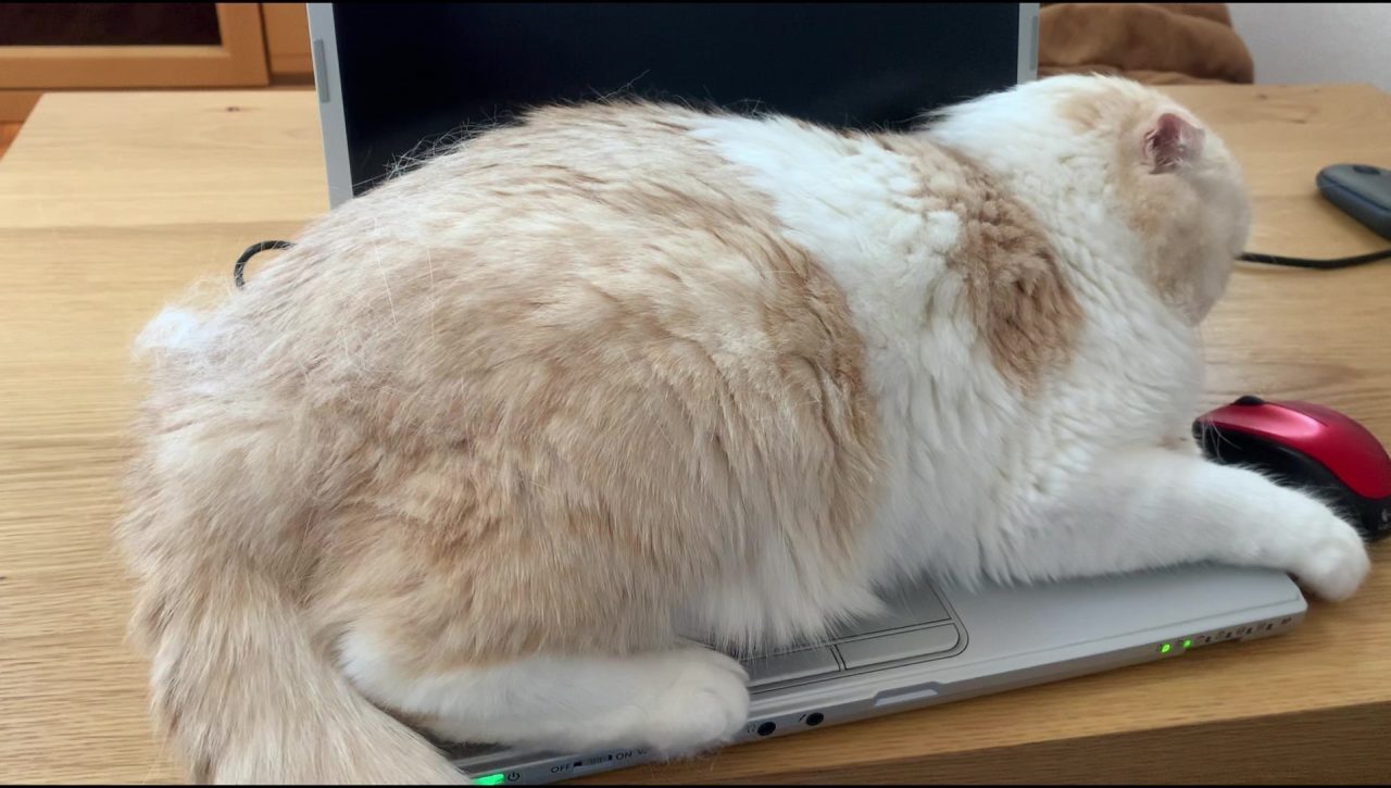 どっしり! しばらくナッツにパソコンを預けておくね~。