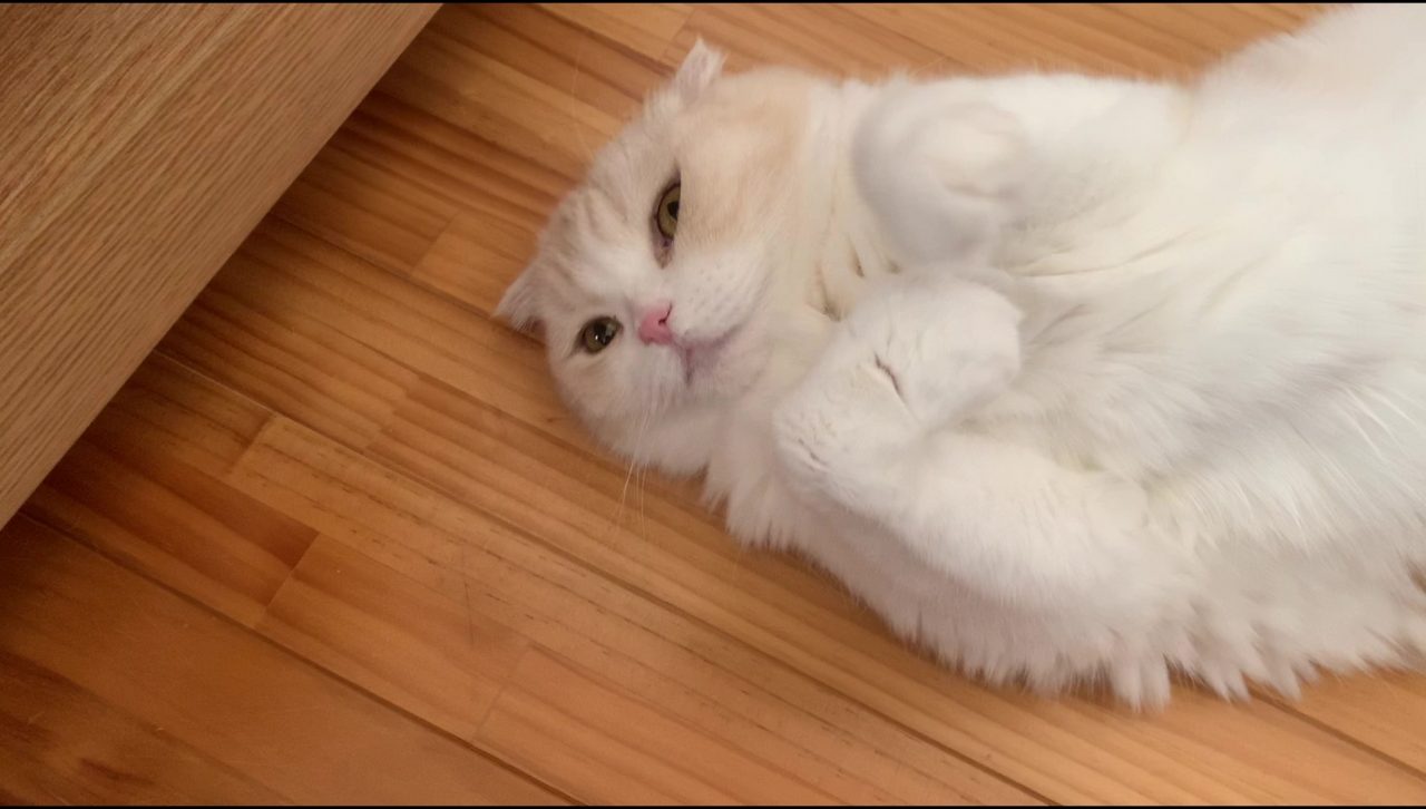 ごろごろごろ・・・ ナッツがごきげんで横になりながら喉を鳴らしています♪