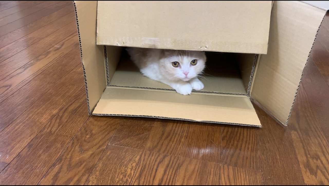 配送品を梱包していたダンボール箱の中にナッツがもぐり込んでいます♪