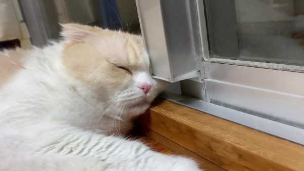 ナッツが窓辺でくつろいでいます♪