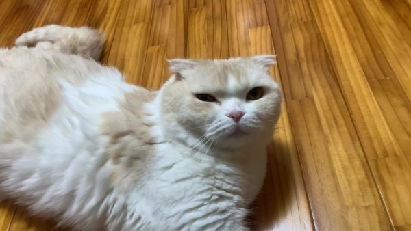 夕暮れ時、ナッツが寝そべりながらパパを見上げてくれています♪