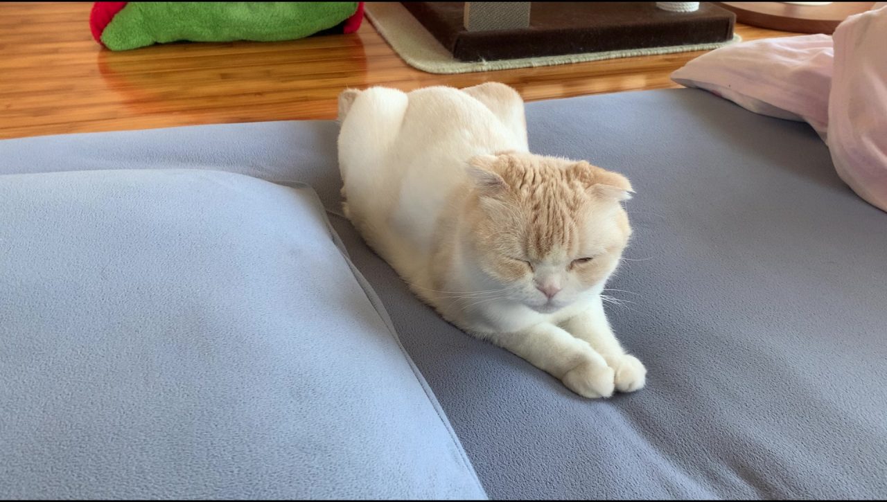 ふぃ~。 まだ少し眠いのでパパのお布団のうえでまったりしています♪