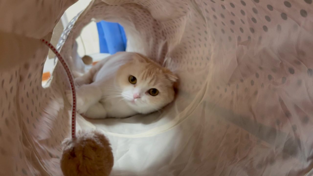 ナッツがキャットトンネルのなかでくつろいでいます♪