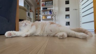 いつもはパパの起床にあわせるかたちで、ナッツもお目覚めしてくれるのですが、今朝はぐっすり寝んねしているようです。