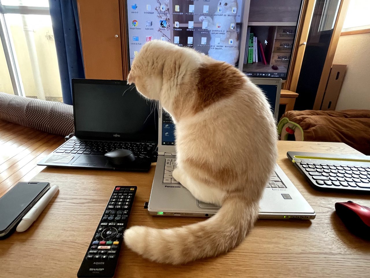 テレワークにいそしんでいると、本日もナッツがパパの応援にかけつけてくれました♪