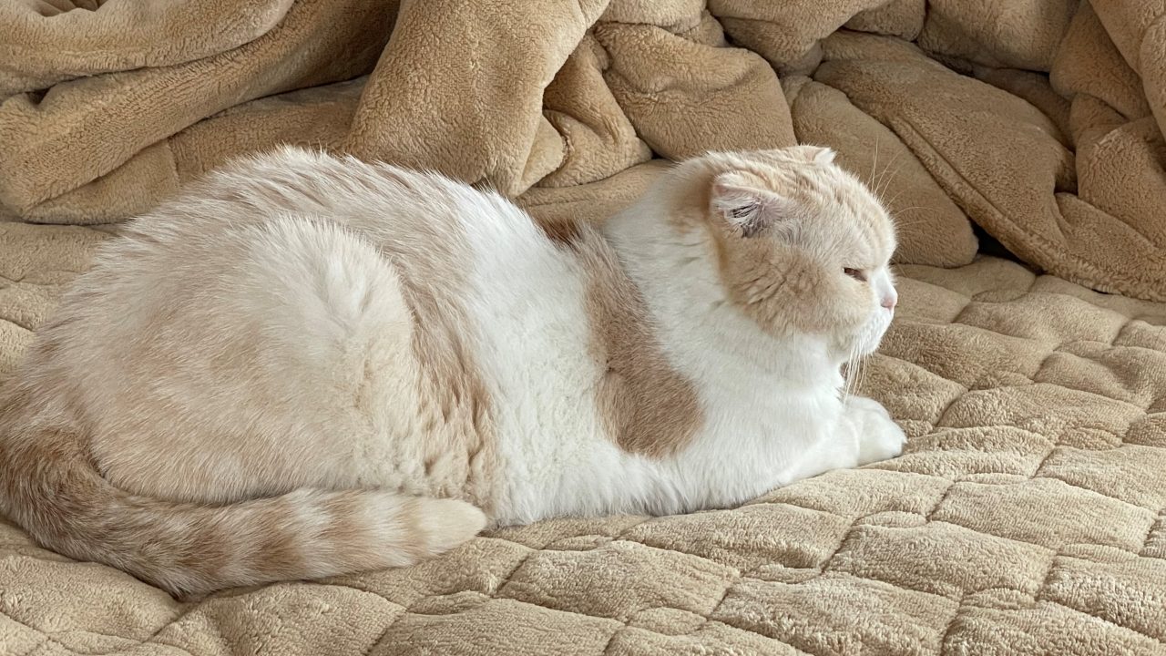 ナッツ~。 パパのお布団でゆっくり寝んねしてくださいね~♡