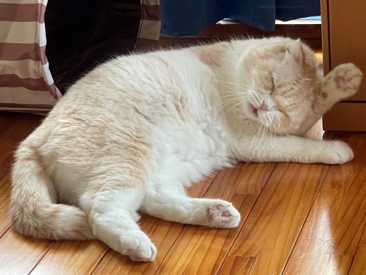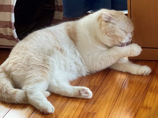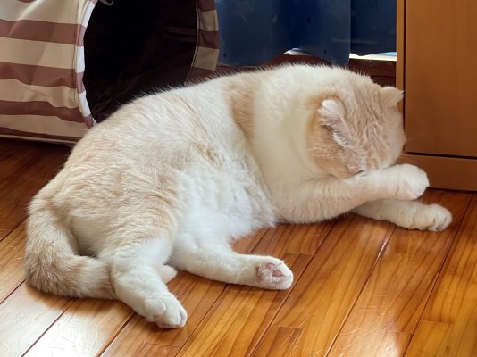 ぺろぺろ♡ 食事がおわったナッツが、お手入れを始めました♪
