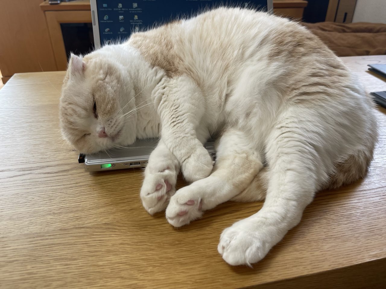 パソコンをベッド代わりにお寝んねしちゃうのかな~。