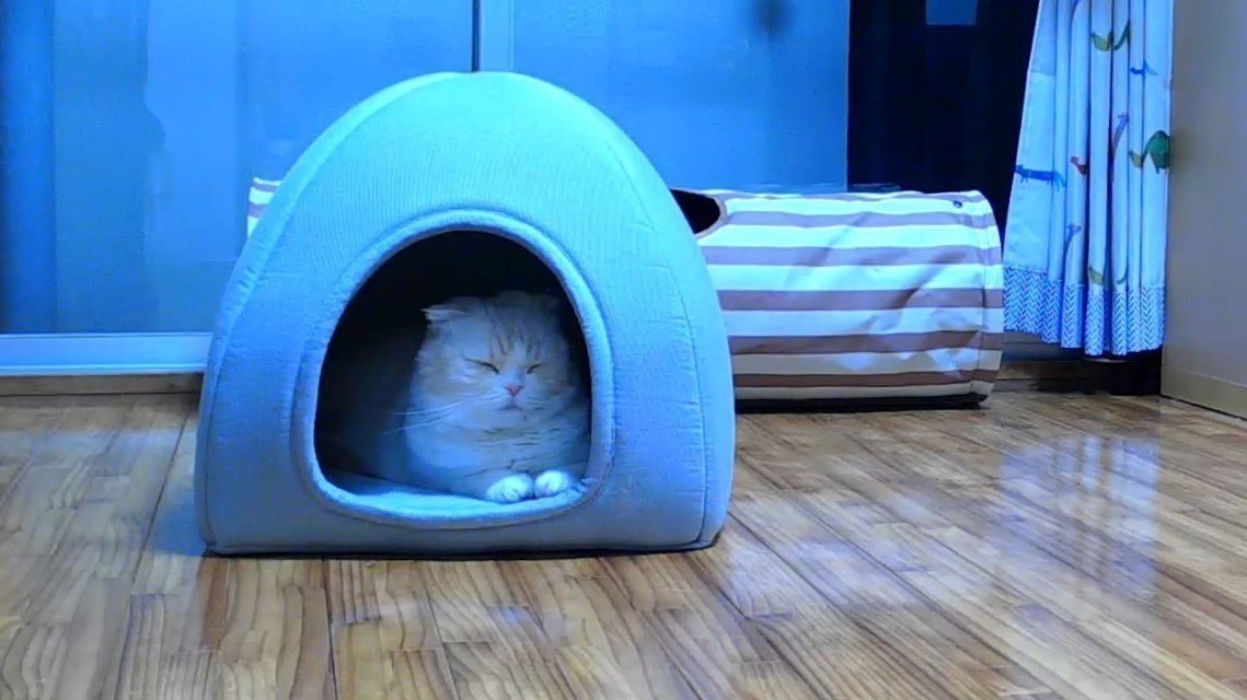 お出かけ中もナッツのことが気になるので、ペットカメラでナッツの様子を見守ります。カメラに映るナッツのすがたをみて安心。 そして、ペットカメラの機能で写真撮影♪