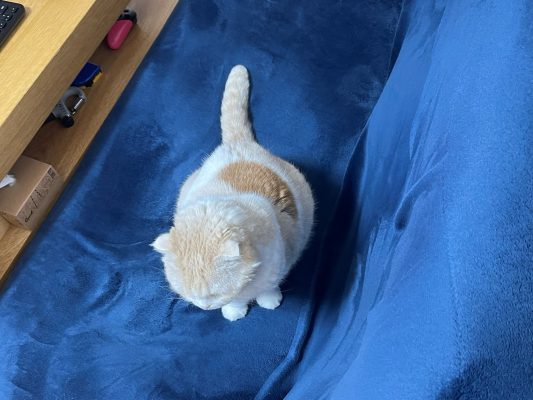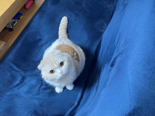 ソファーにおすわりするナッツのもとにパパは向かいます♪