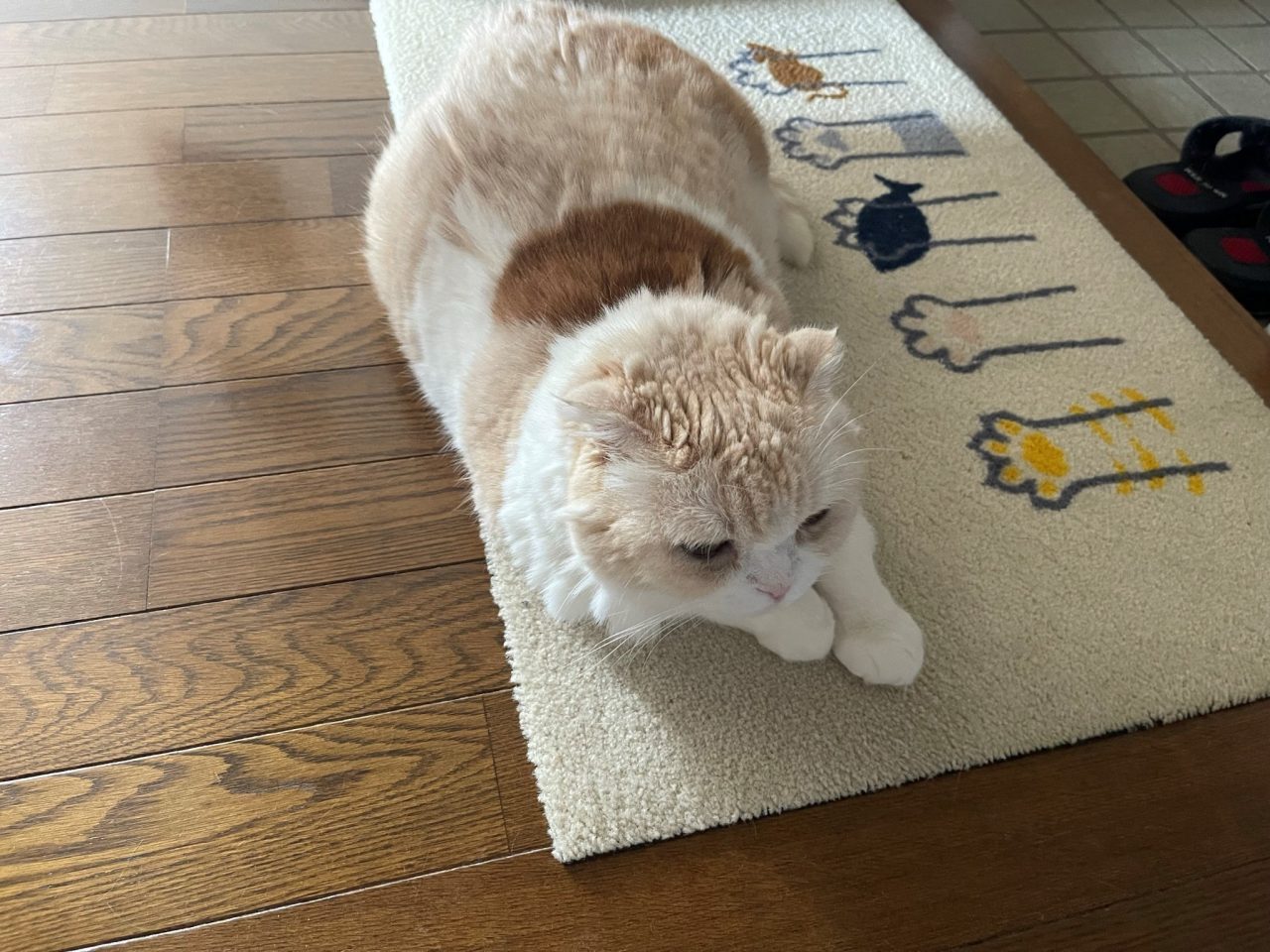 我が家の玄関マットは、ねこちゃん柄。 パパのお気に入りなんだけど、ナッツも気に入ってくれてるのかな~。