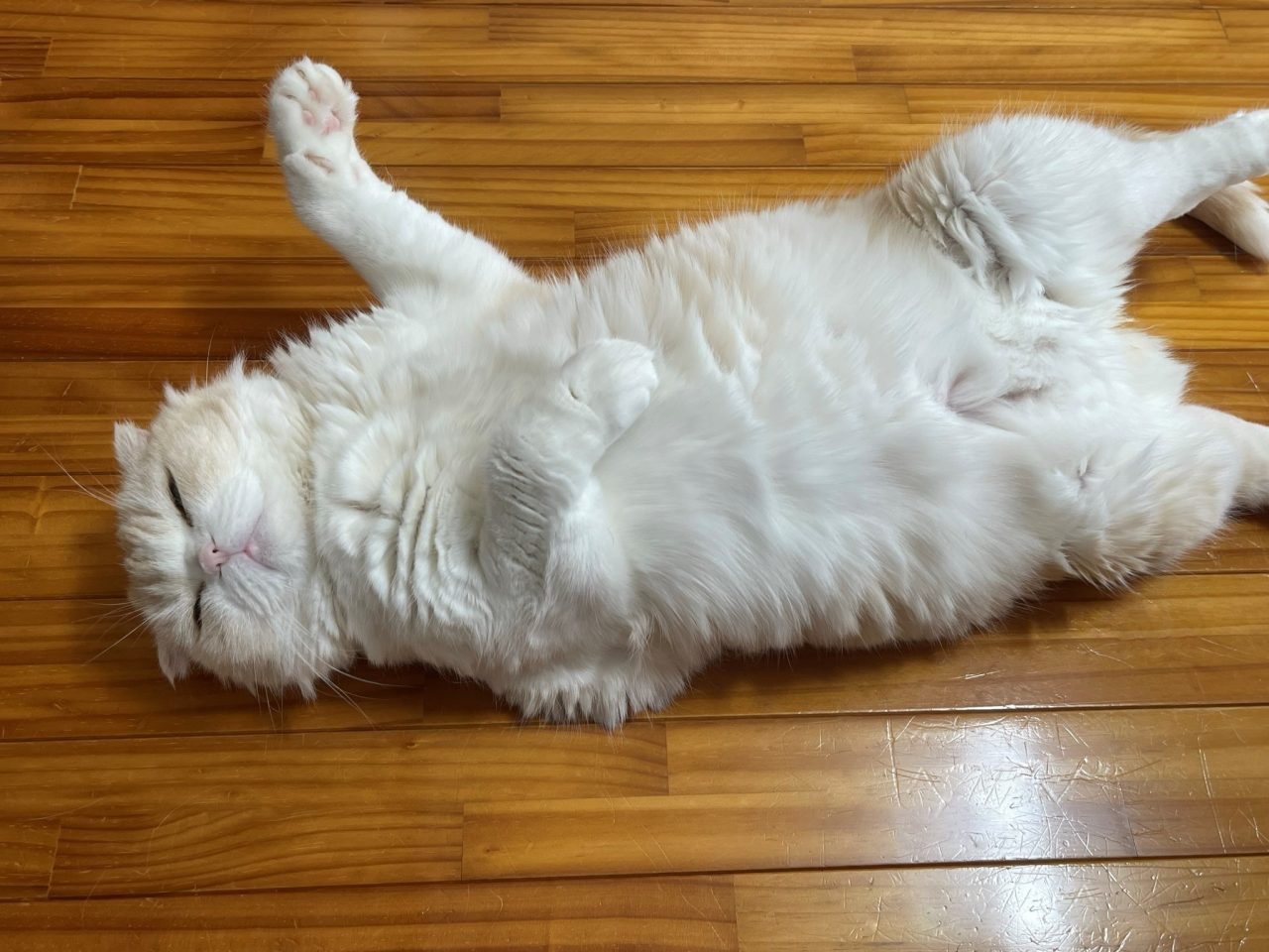お部屋の中で、ナッツがのんびり寝転んでいます。