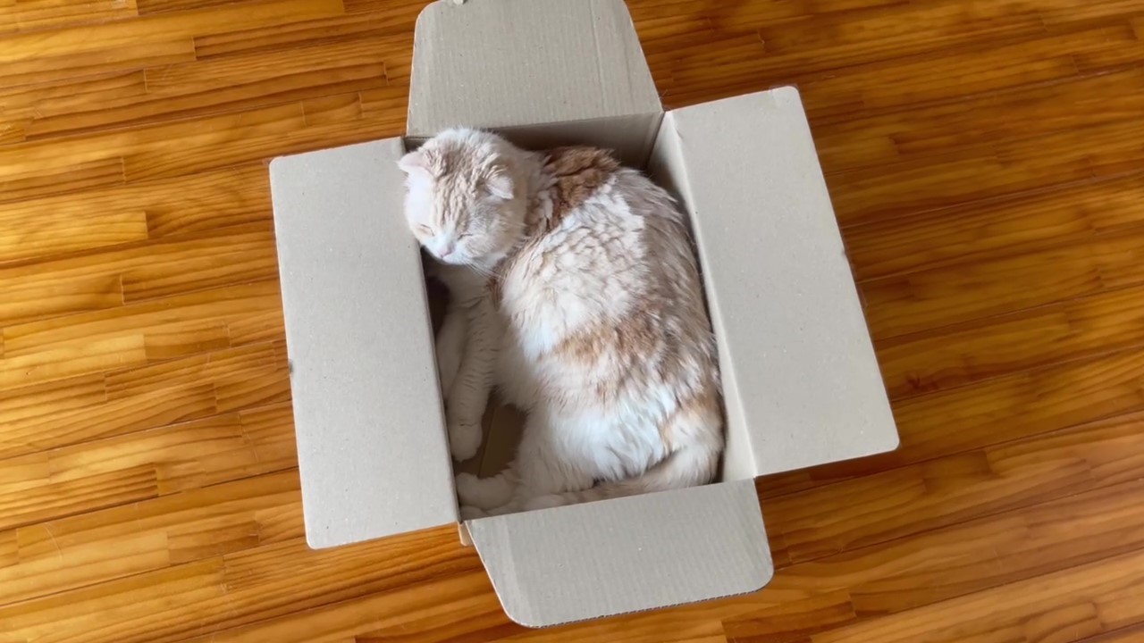 ダンボール箱の包まれ感が、落ち着くのかな~。