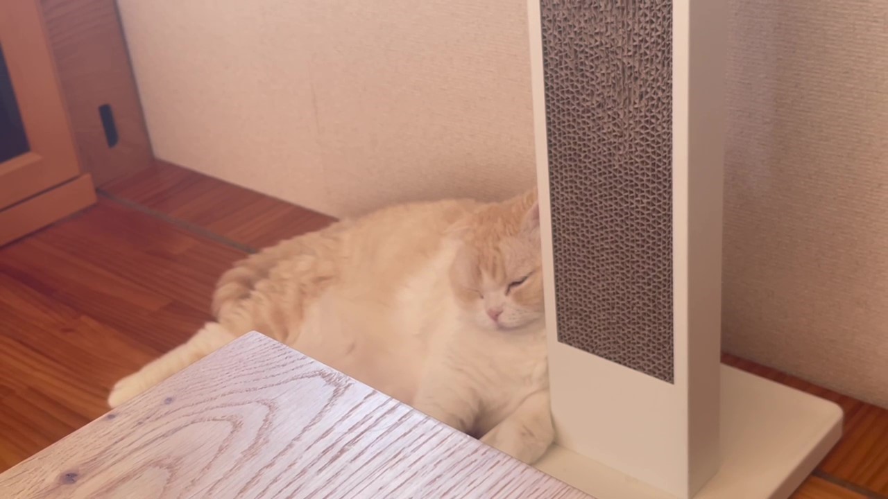 そして、お爪とぎに寄りかかります。