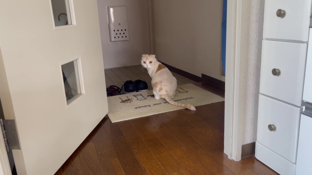 パパがお家に帰ってきたときも、ナッツがお出迎えしてくれるもんね~。