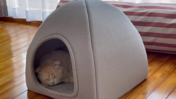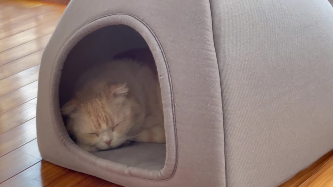 ナッツハウスのなかでお寝んねしているナッツ。