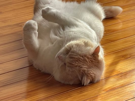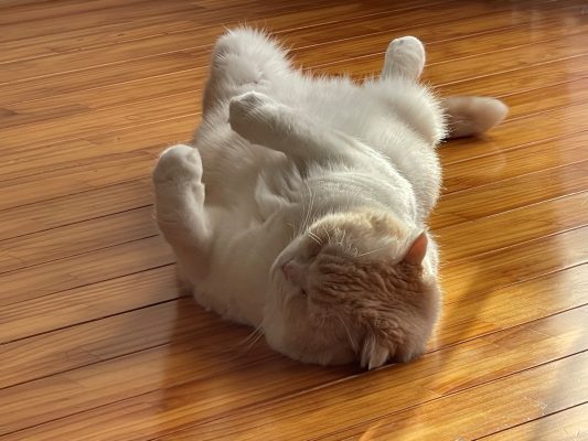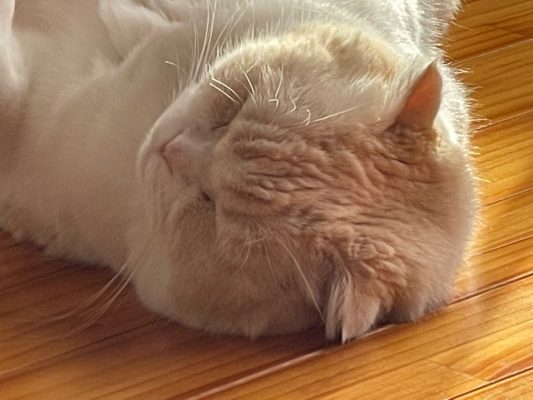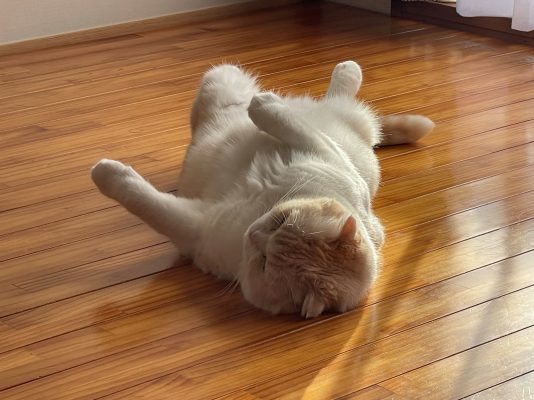 夕暮れ時・・・ごろんと寝転がって、のんびりくつろぐナッツの姿があります。
