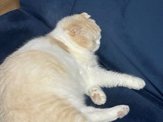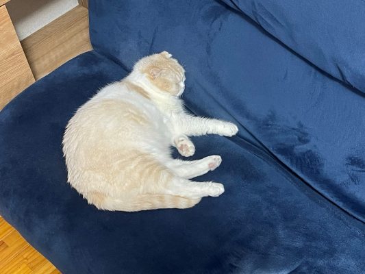 ソファーのうえで、ナッツがすやすやお寝んねしています。
