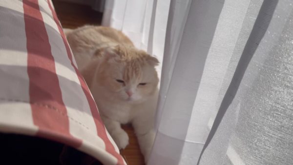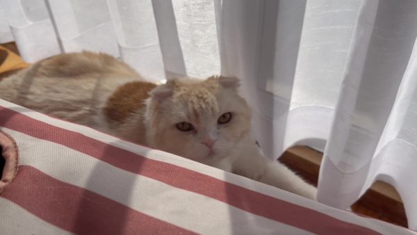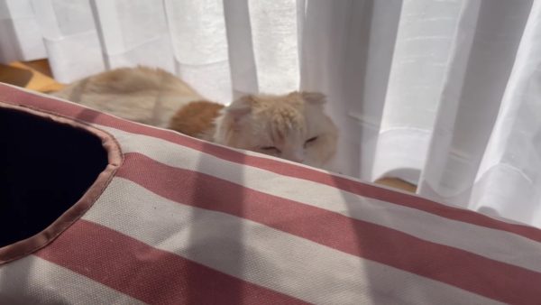 あっ!! キャットトンネルのよこにおすわりしているナッツを発見!