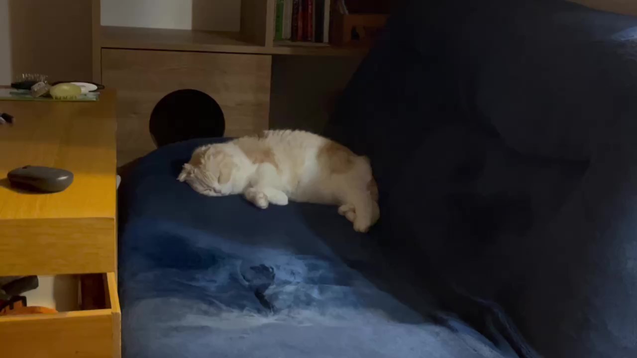 夜中に目が覚めたので、こっそりナッツの様子を見守ります。