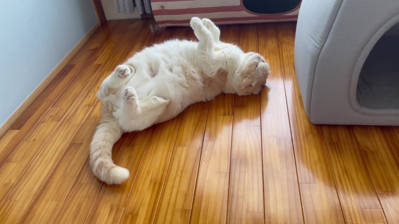 くるりん♡ ヘソ天のポーズで、パパに癒しと安らぎを運んできてくれました♡