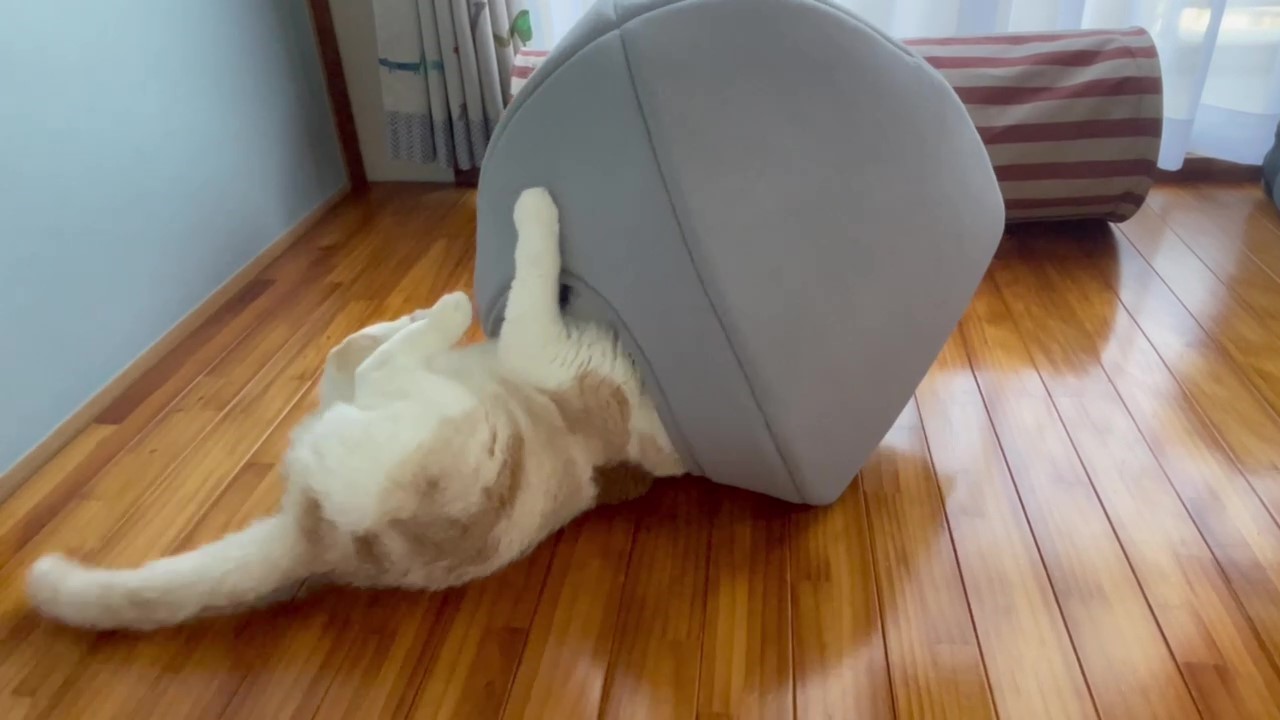 ナッツハウスに、お手てを伸ばすナッツ。