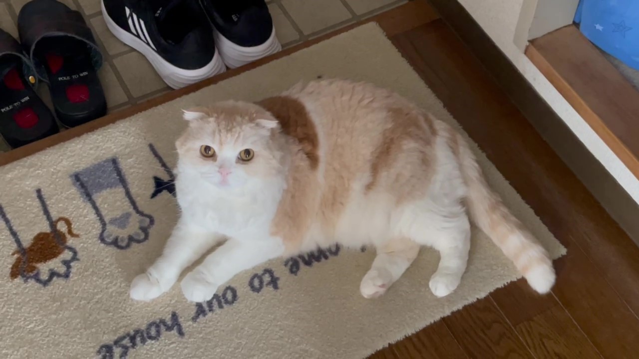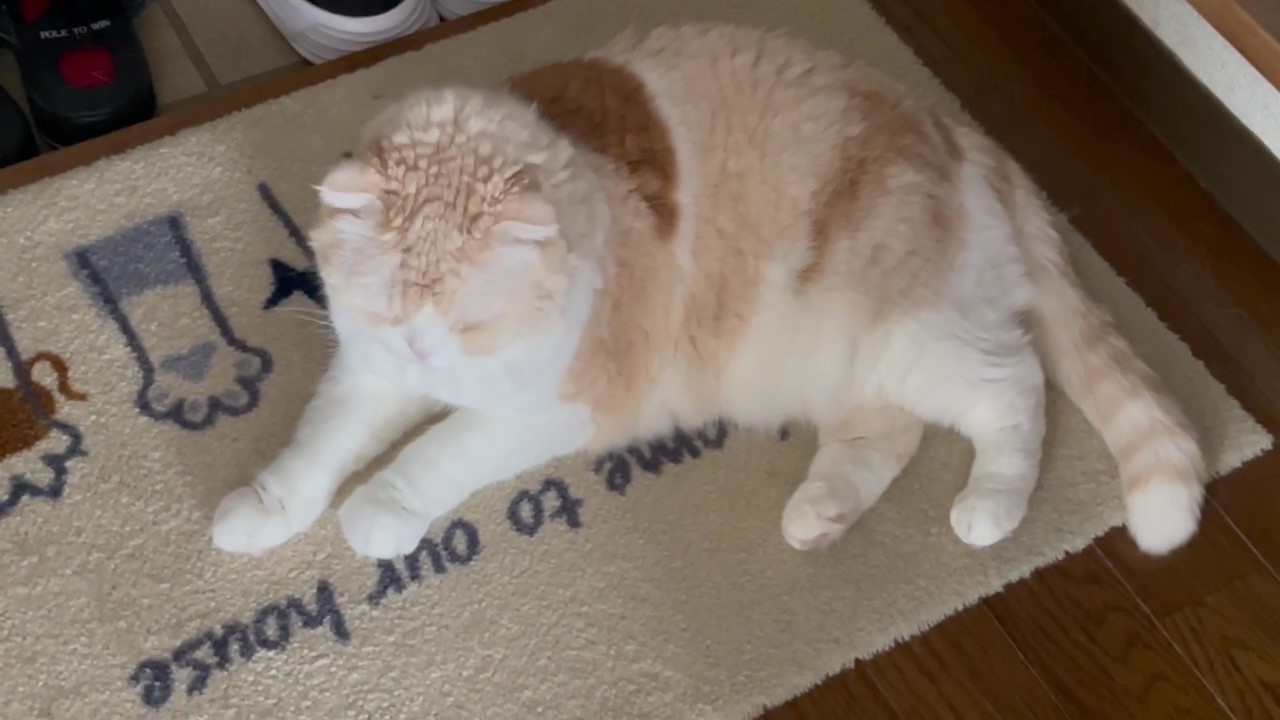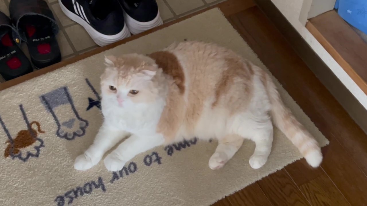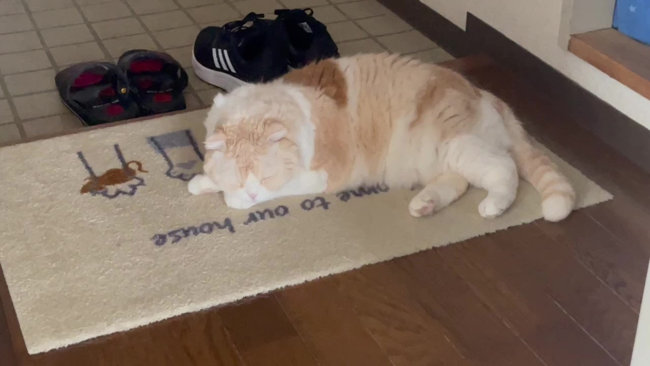 ナッツが玄関でよこになっています。