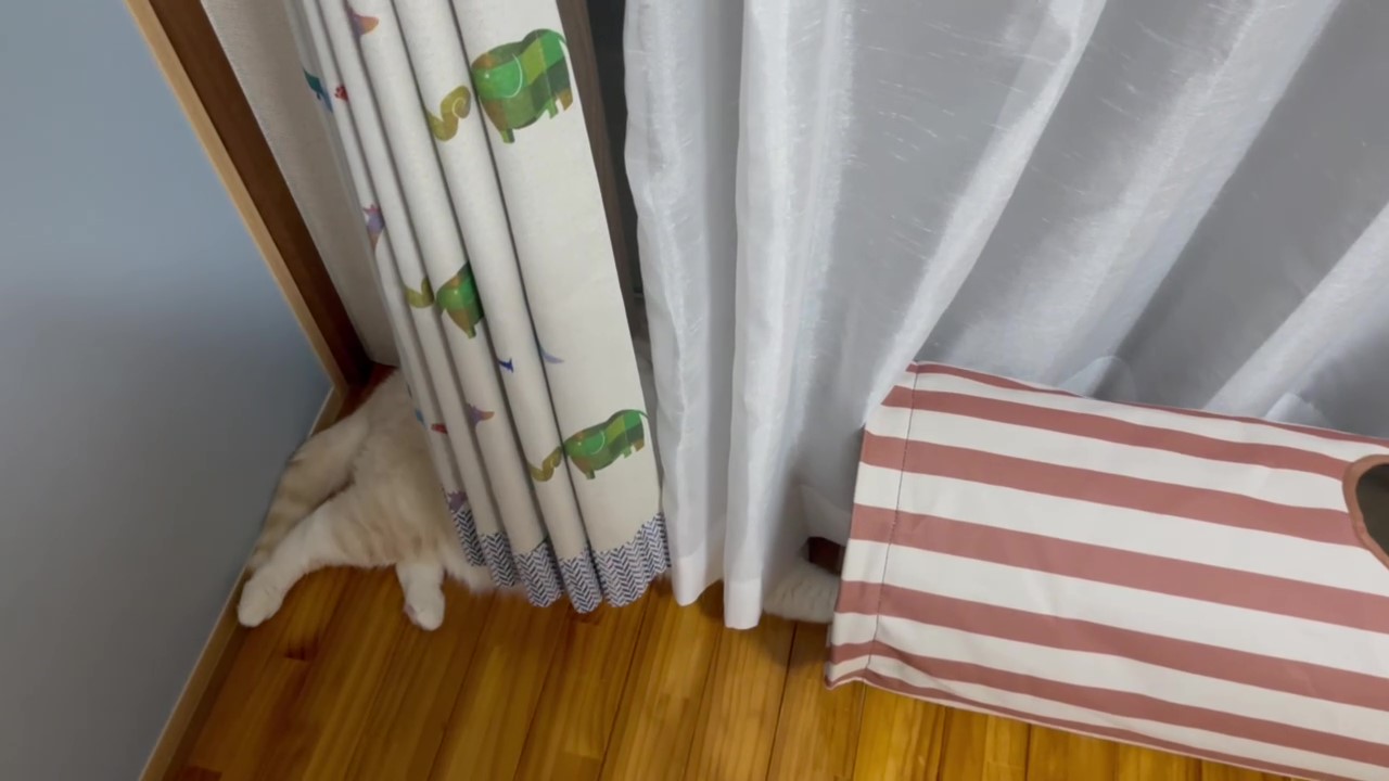 カーテンが開いたから、すこしびっくりしたのかな~。