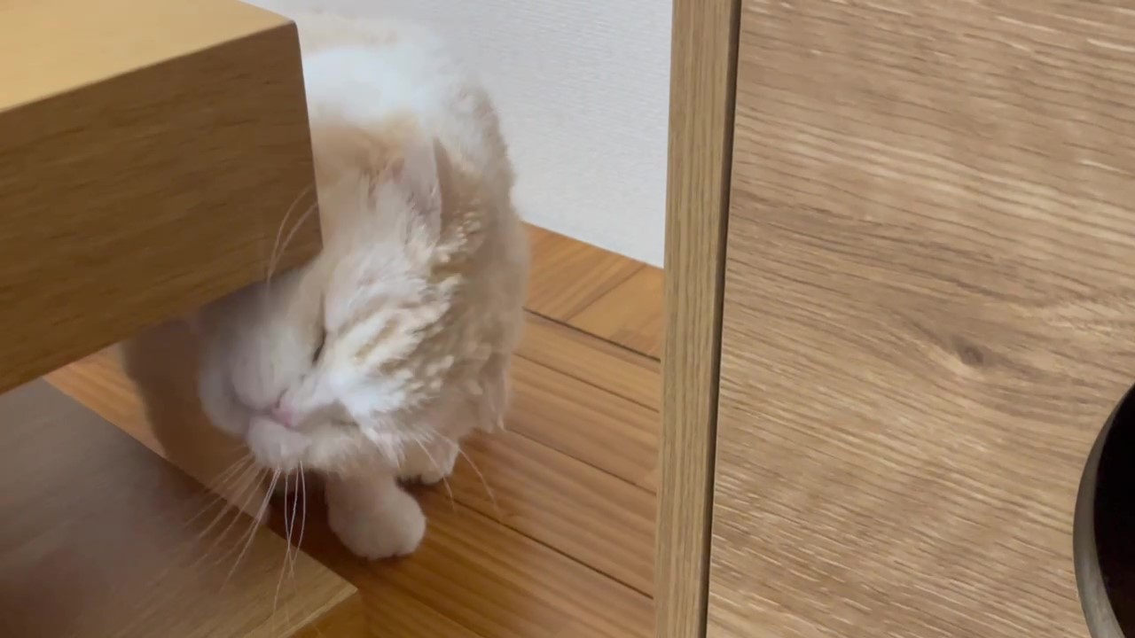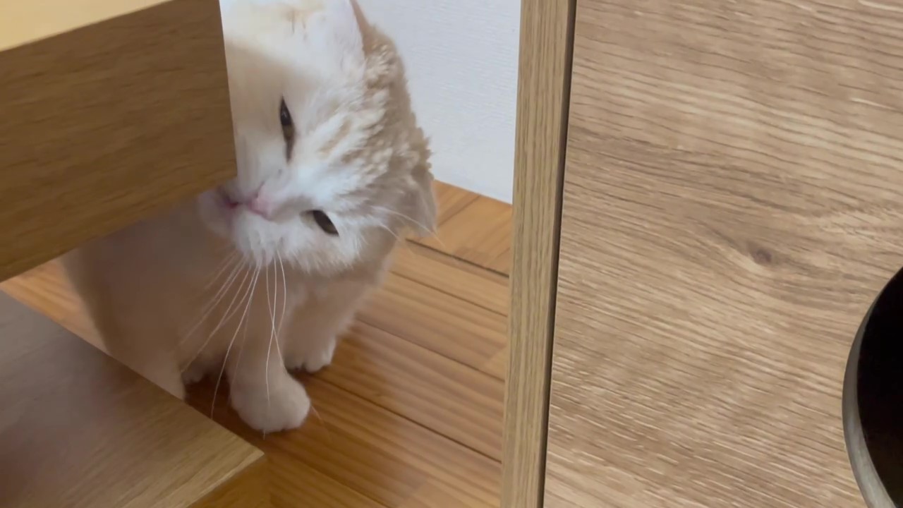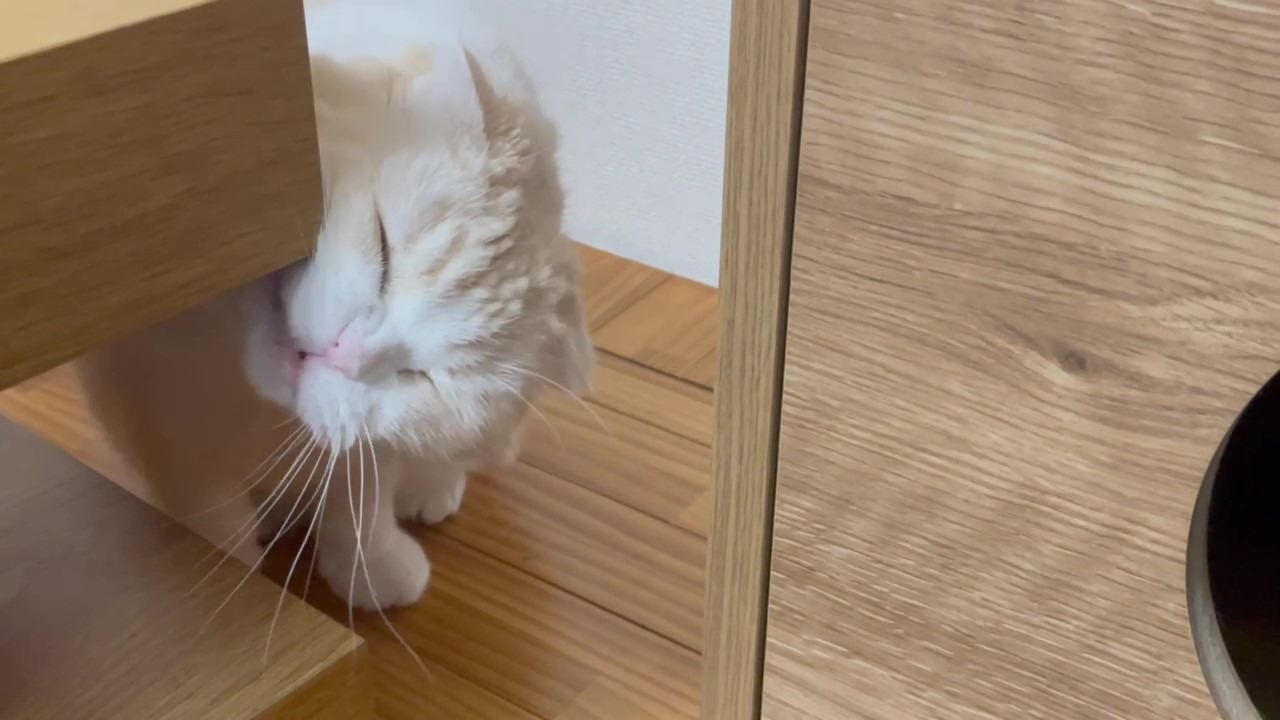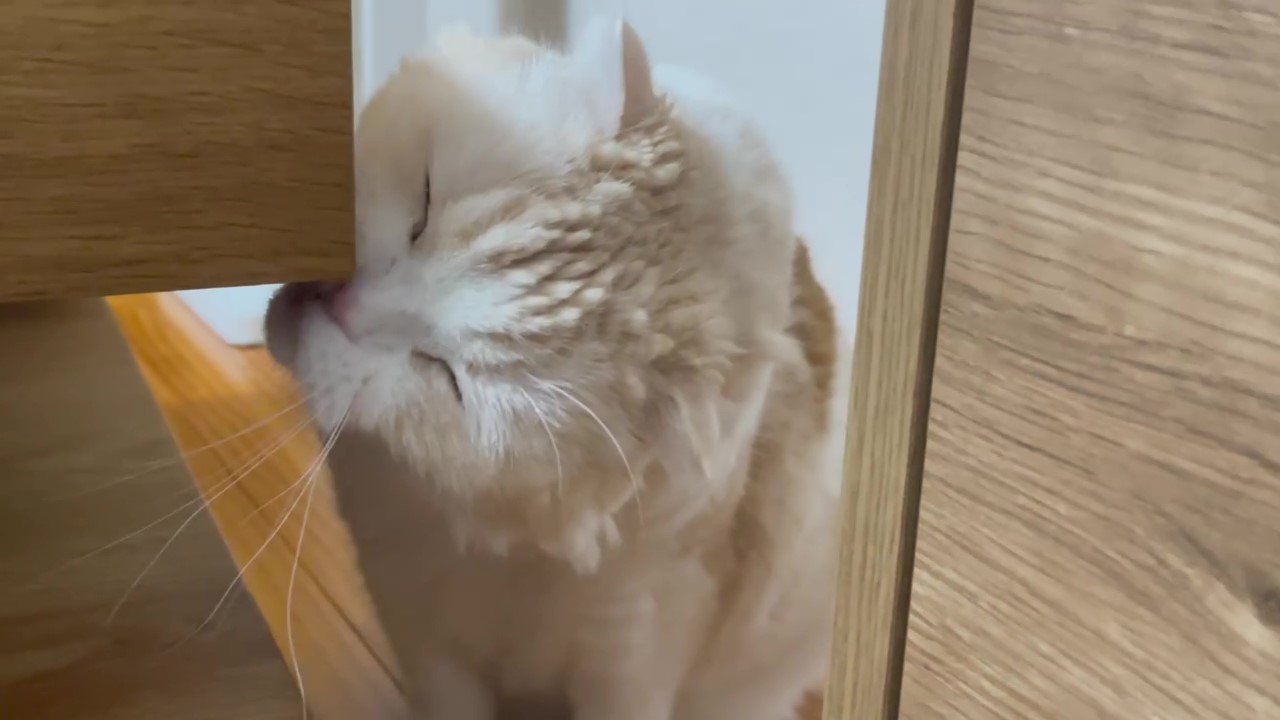 テーブルの角っこに、ほっぺたをすりすりしてくれています♪