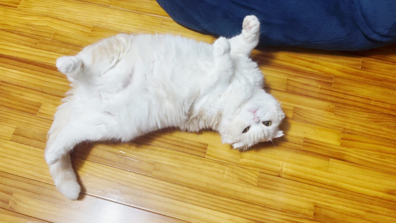 ナッツが、無邪気に寝転がっています。