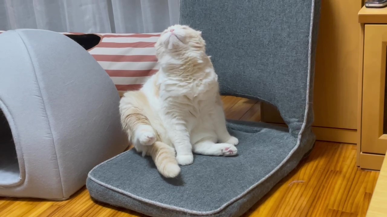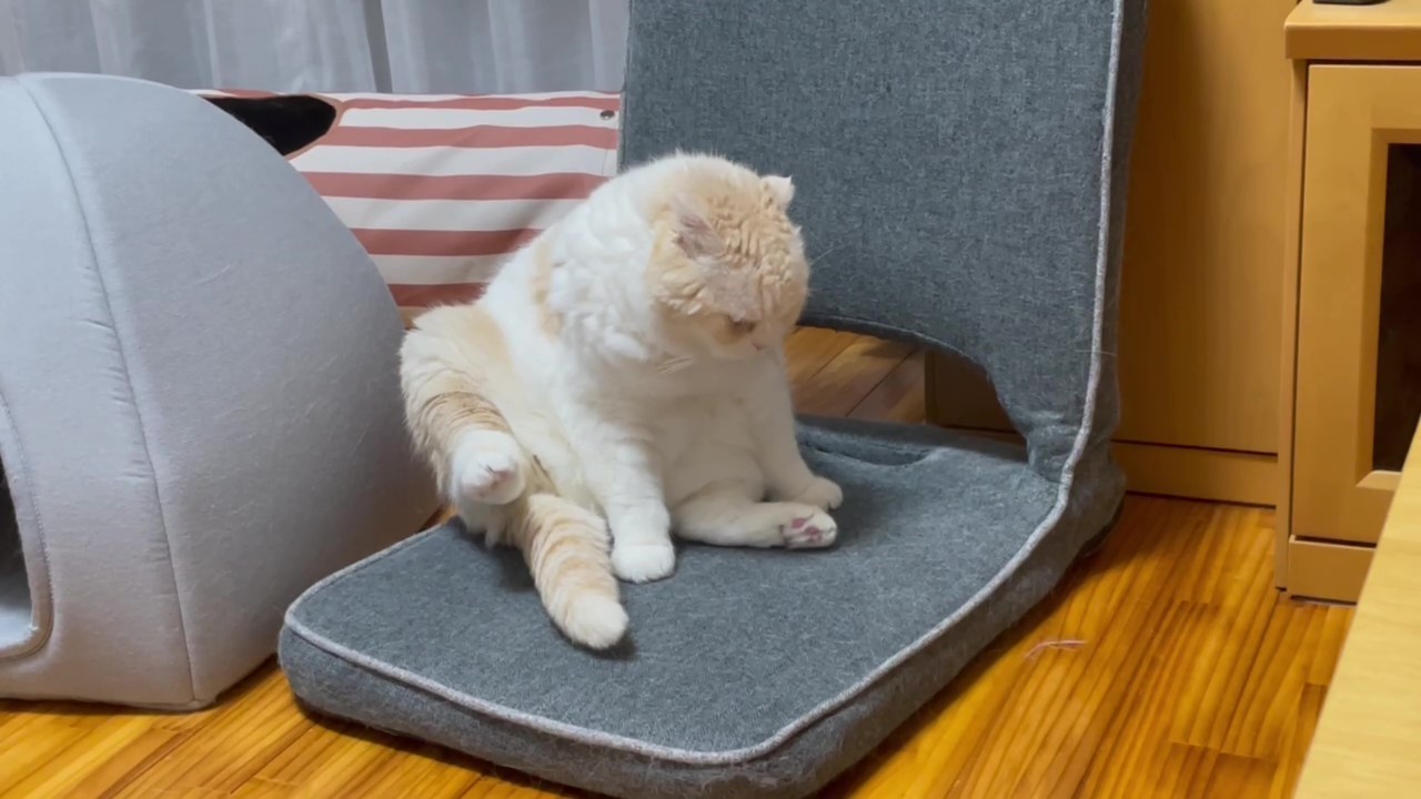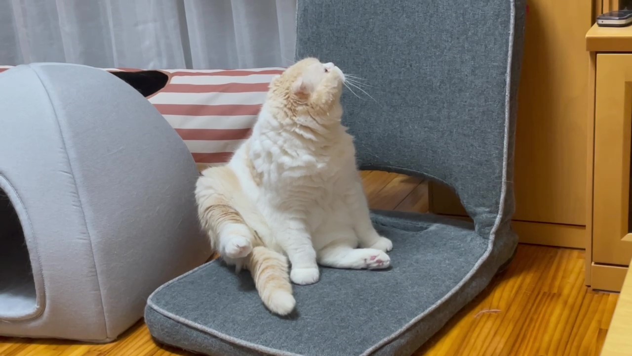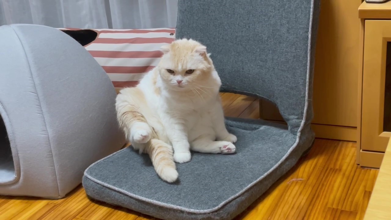 座椅子の上に、可愛くおすわりするナッツ。