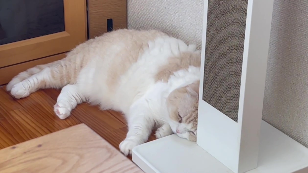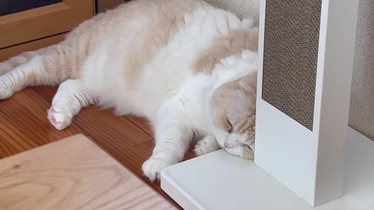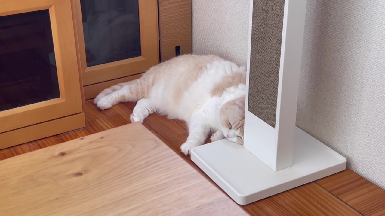 爪とぎ器の台座を、枕にしてのお寝んね。
