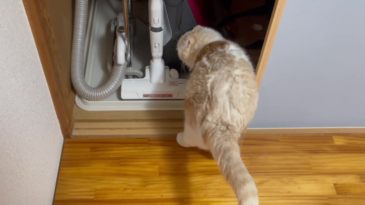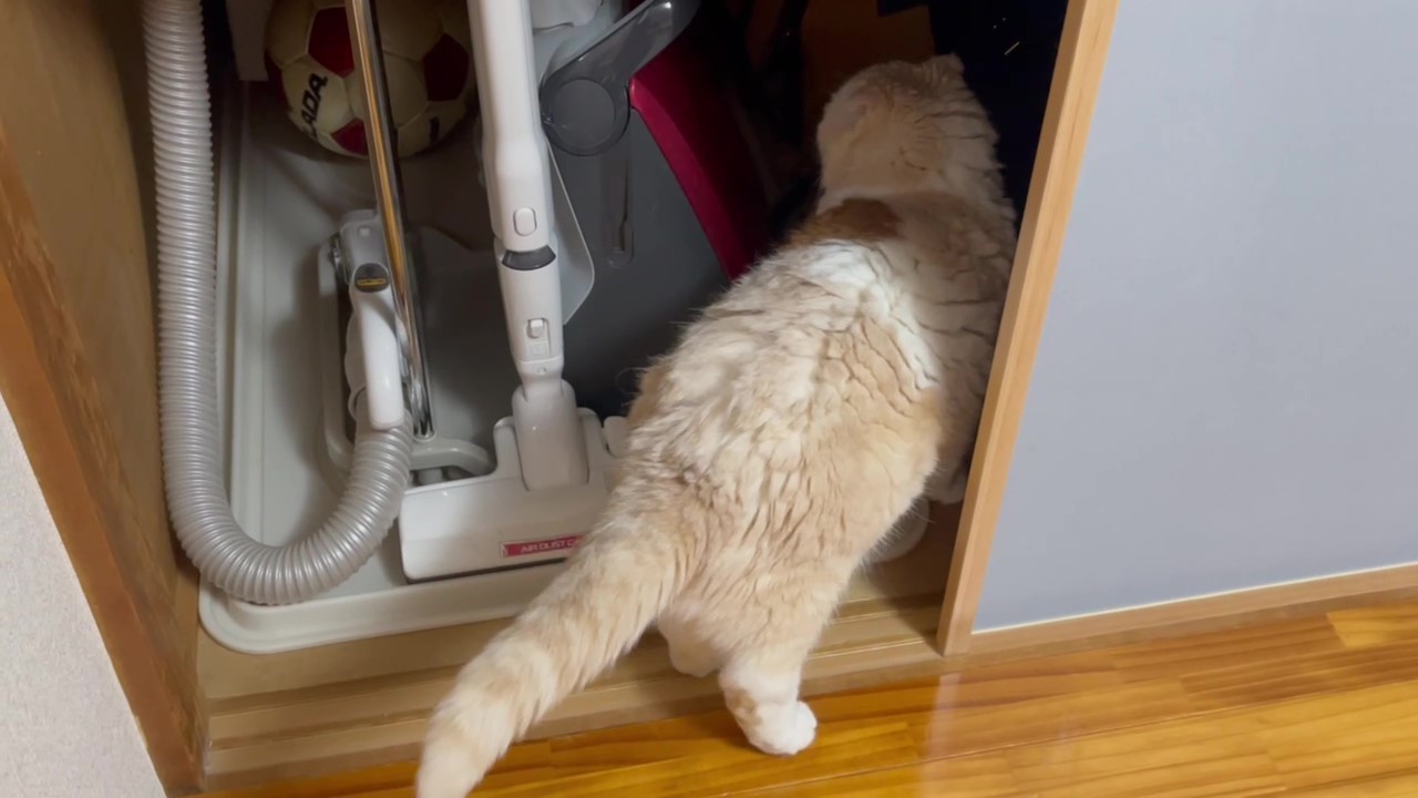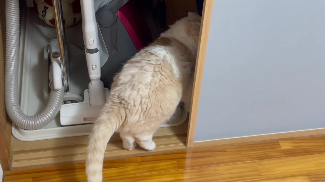 きょろ!きょろ! 押し入れの中を見渡しています。