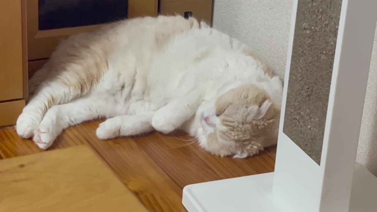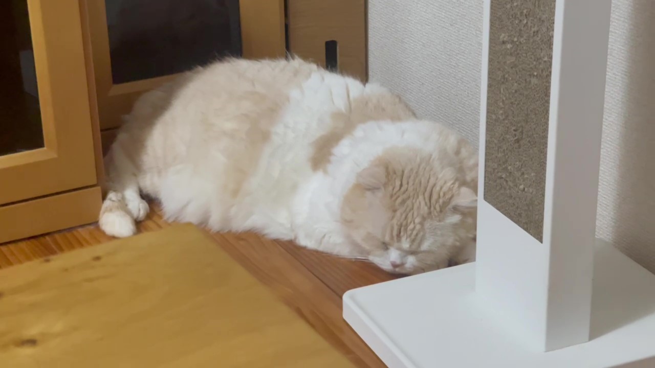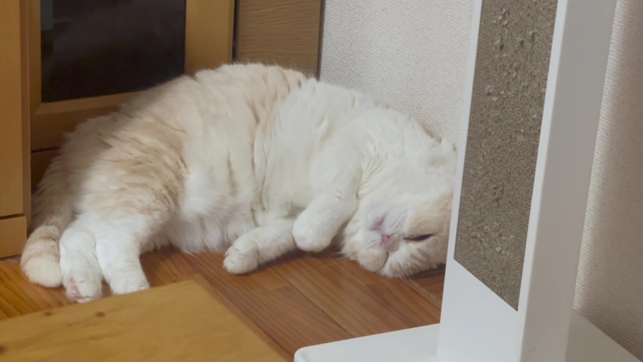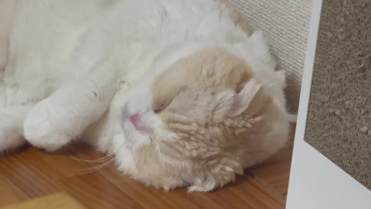 ナッツが、とっても眠そうな表情でよこになっています。