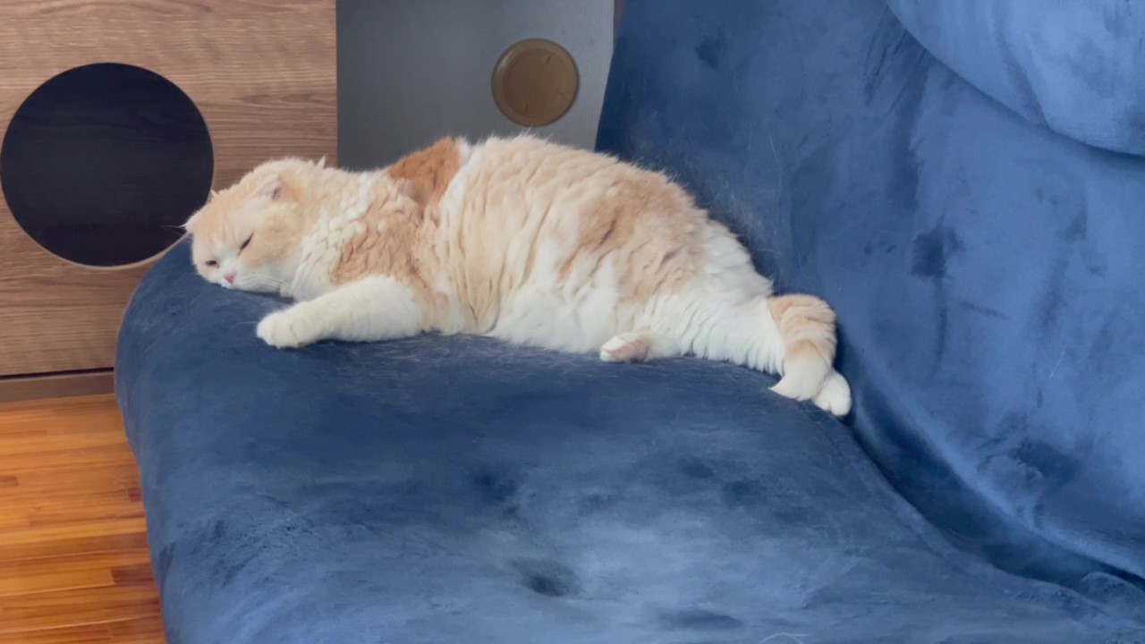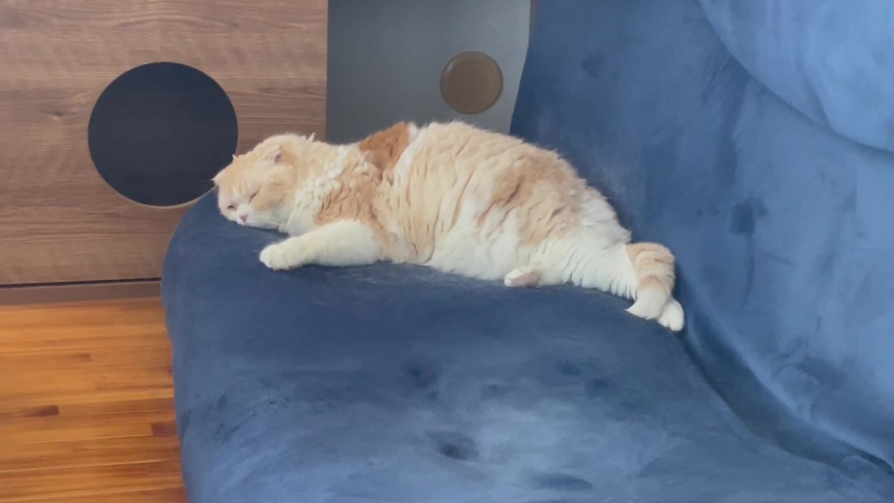 朝のひととき。 ソファーのうえで、ナッツがのんびり過ごしています。