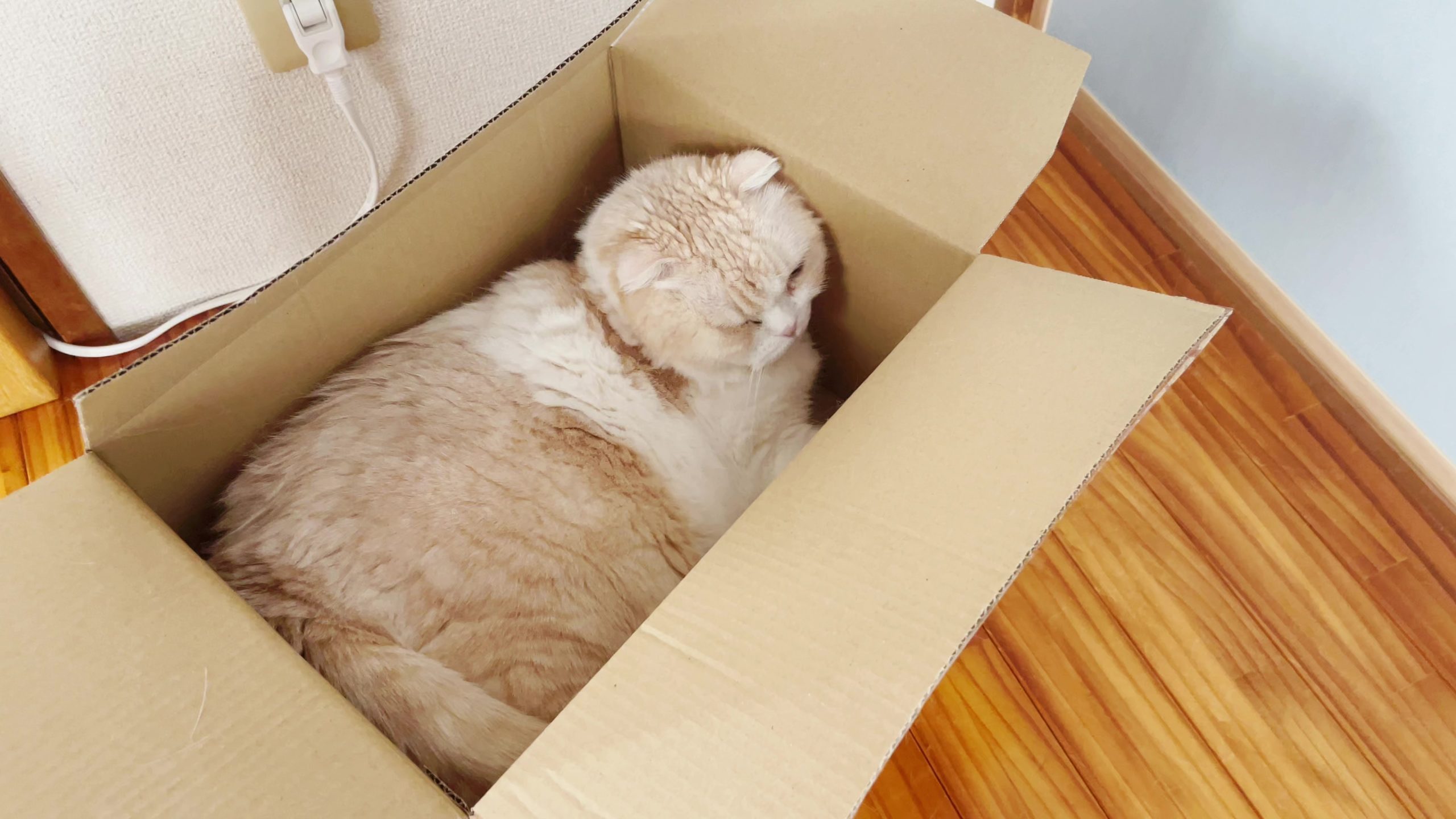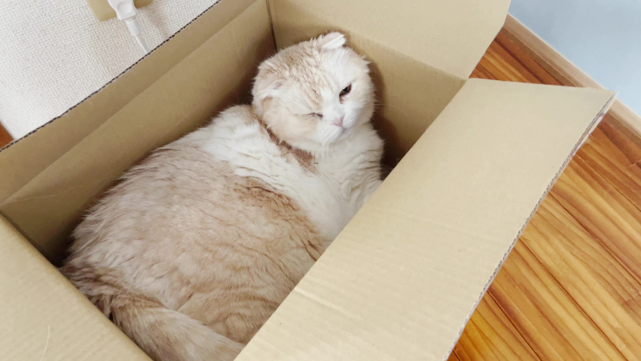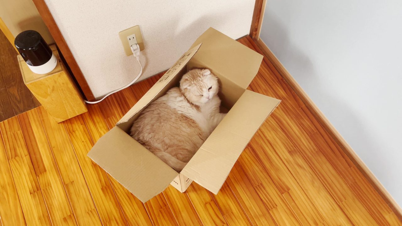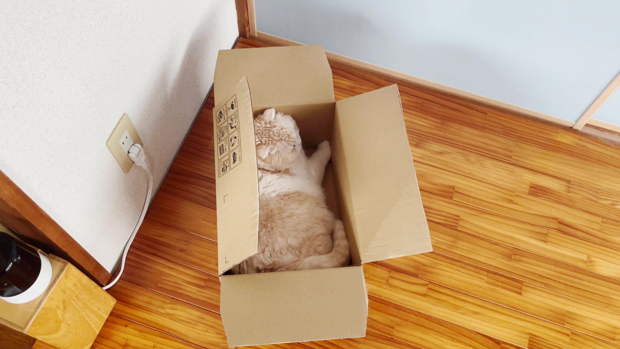ダンボール箱の中から配送物を取り出すと、すぐに入ってしまいました♪