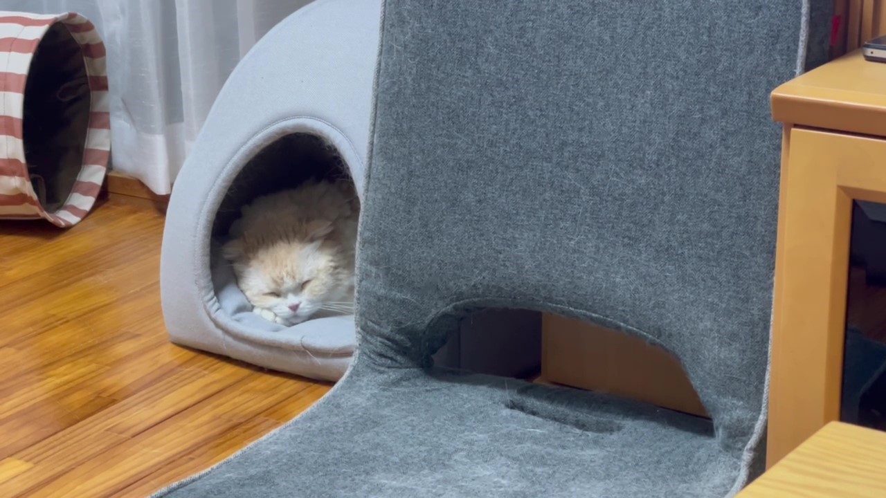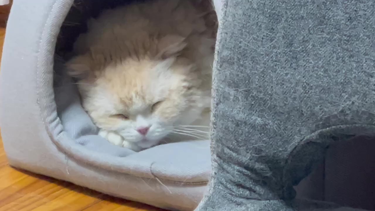 ナッツが、ナッツハウスの中でゆっくり寝んねしています。