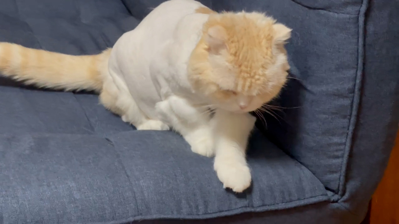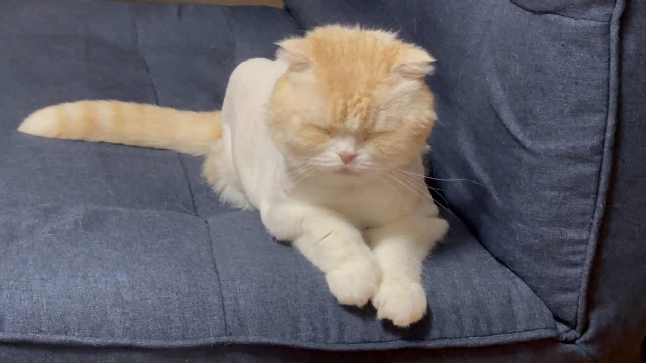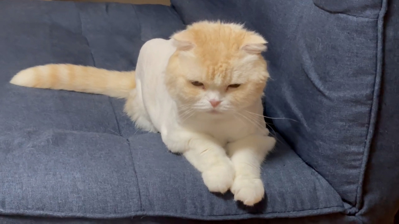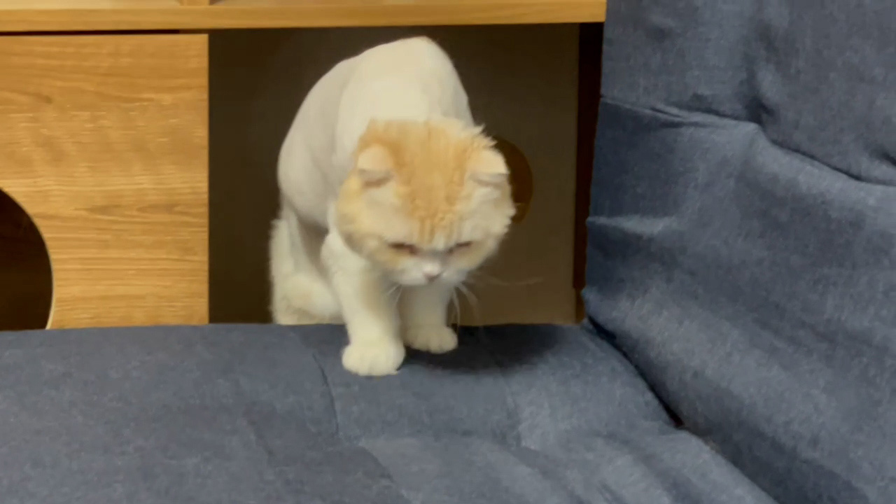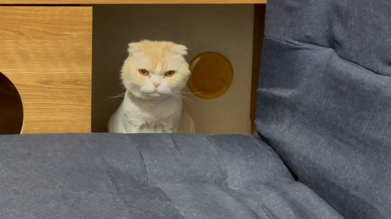 ソファーの奥からナッツが見つめてくれています。