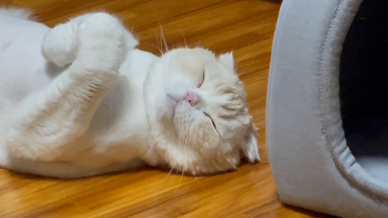 ヘソ天すがたのナッツ。 お目めがとろ~んとなって、とっても眠たげです。